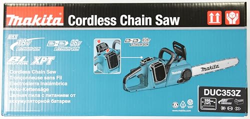 Die Kettensäge wird mit zwei 18-Volt-Akkus aus der Makita LXT-Serie betrieben, um maximale 36V-Leistung zu erzielen. Im Standard-Lieferumfang sind Akkus und Ladegerät in der Regel nicht enthalten, diese müssen separat erworben werden, falls nicht bereits vorhanden.