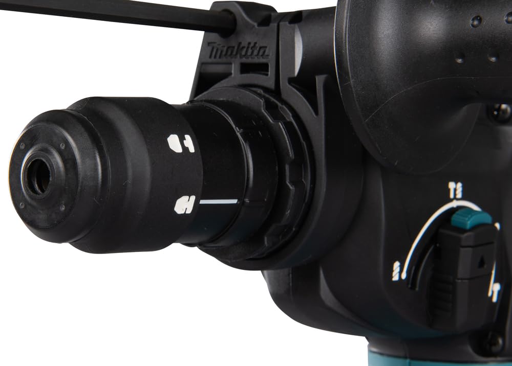 - Schnellwechselfutter: Ermöglicht den unkomplizierten Wechsel zwischen SDS-PLUS Aufsätzen und zylindrischen Bohrern.