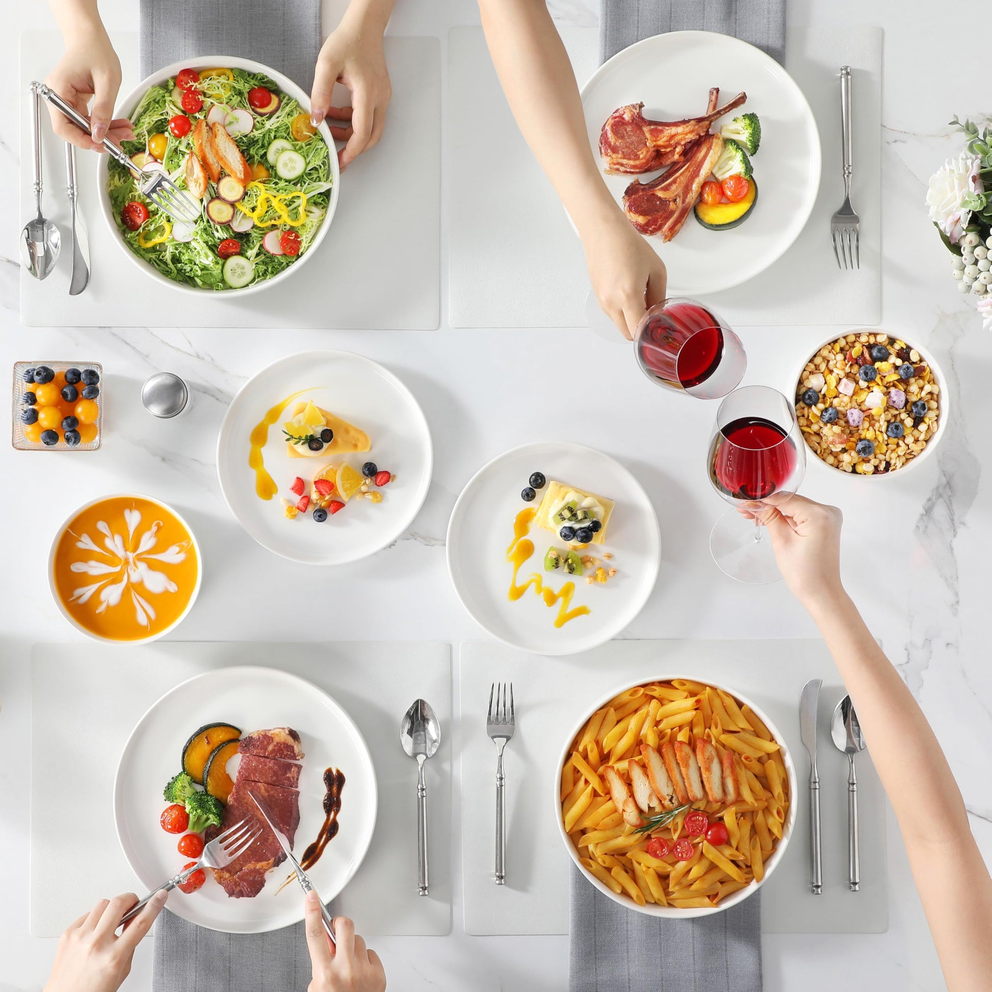 - Umfassendes Set für 6 Personen: Beinhaltet 6 Speiseteller (ca. 26 cm), 6 Dessertteller (ca. 21 cm), 6 tiefe Teller (ca. 23 cm) und 6 Müslischalen (720 ml).