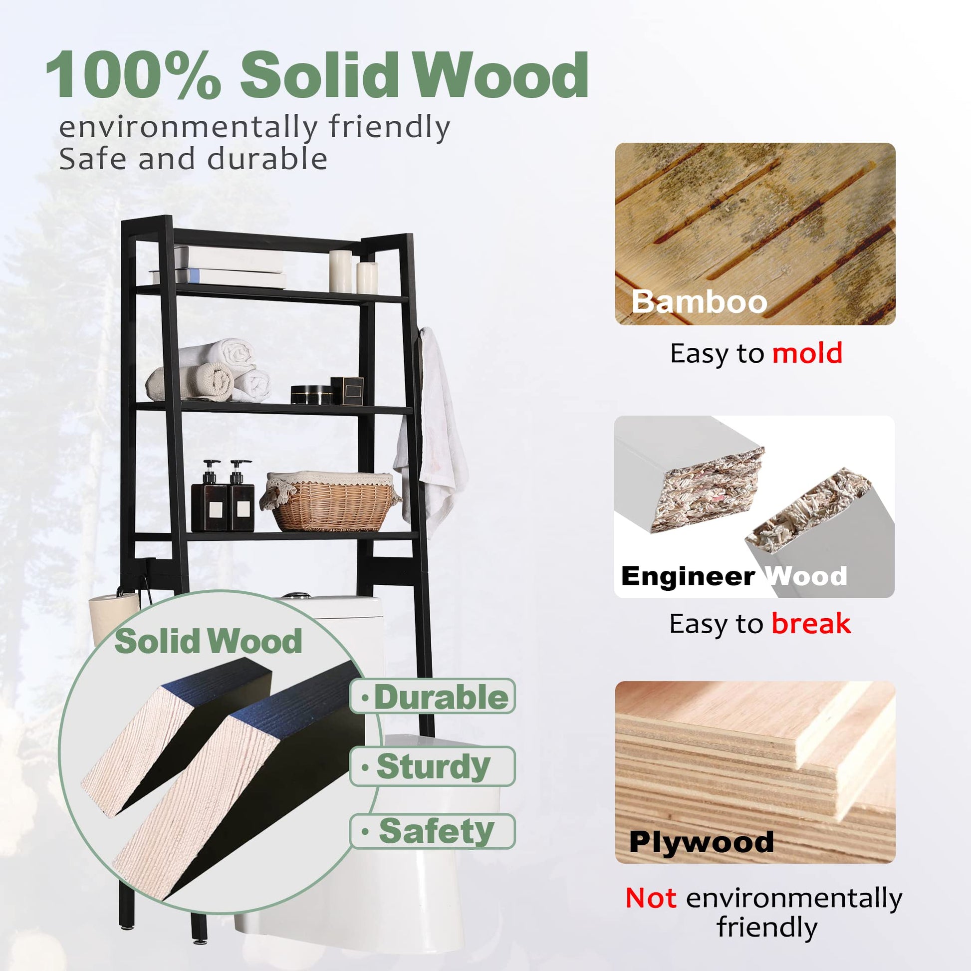 Das Regal besteht aus 100% massivem und umweltfreundlichem Kiefernholz. Es ist speziell für das Badezimmer konzipiert: Die luftdurchlässigen Ablageflächen sorgen für eine gute Belüftung, halten Ihre Gegenstände trocken und verhindern Staunässe.