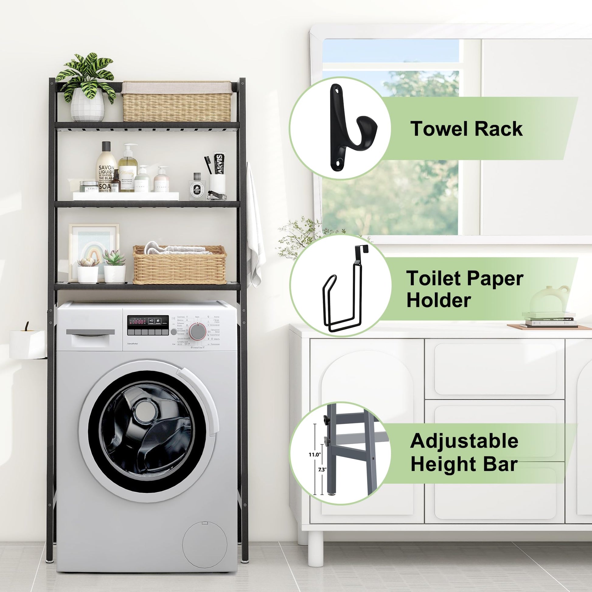 MallKing WC-Regal 3-stufig mit Toilettenpapierhalter – Schwarz