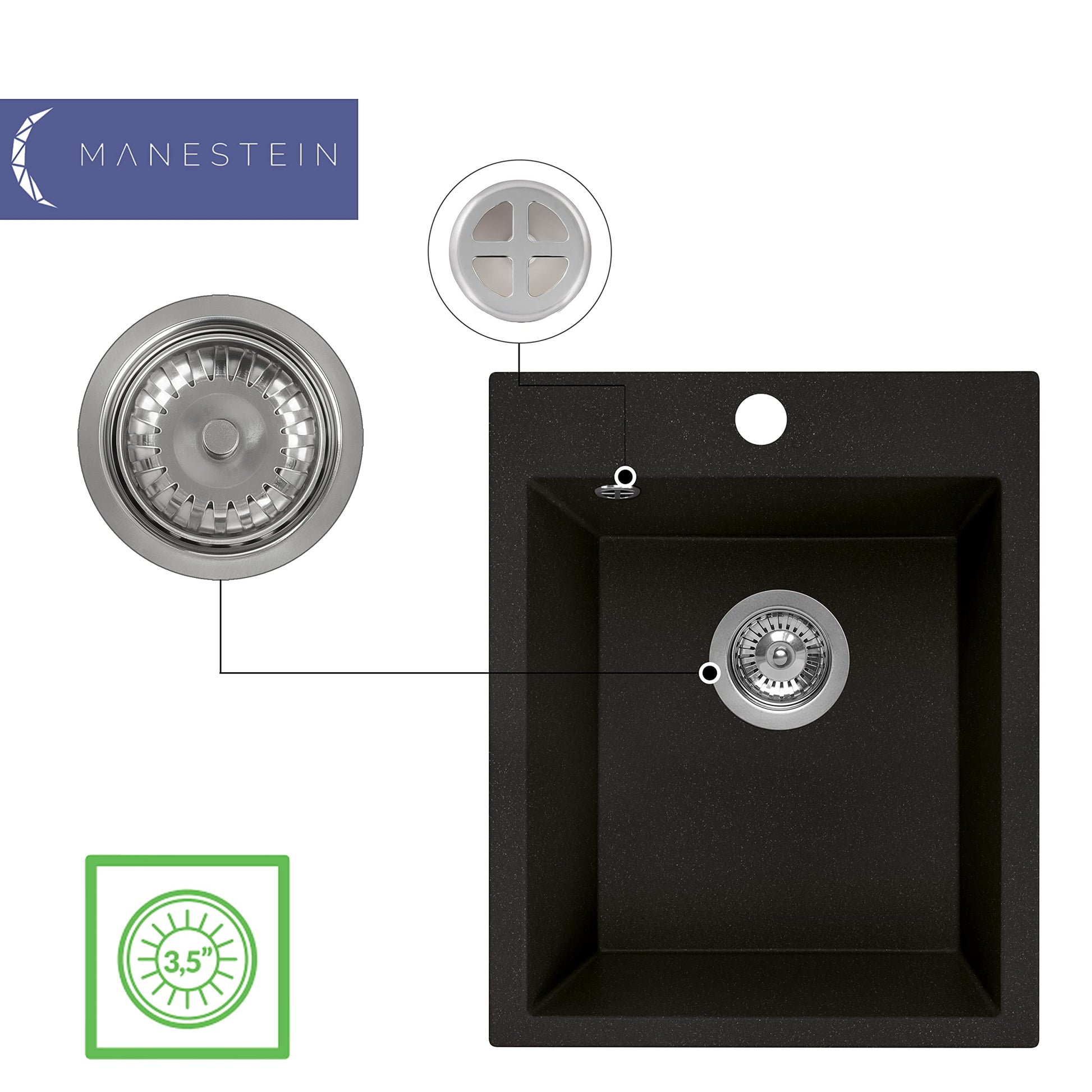 Manestein Granit Einbau-Spüle Einzelbecken 48x39 cm - Graphit