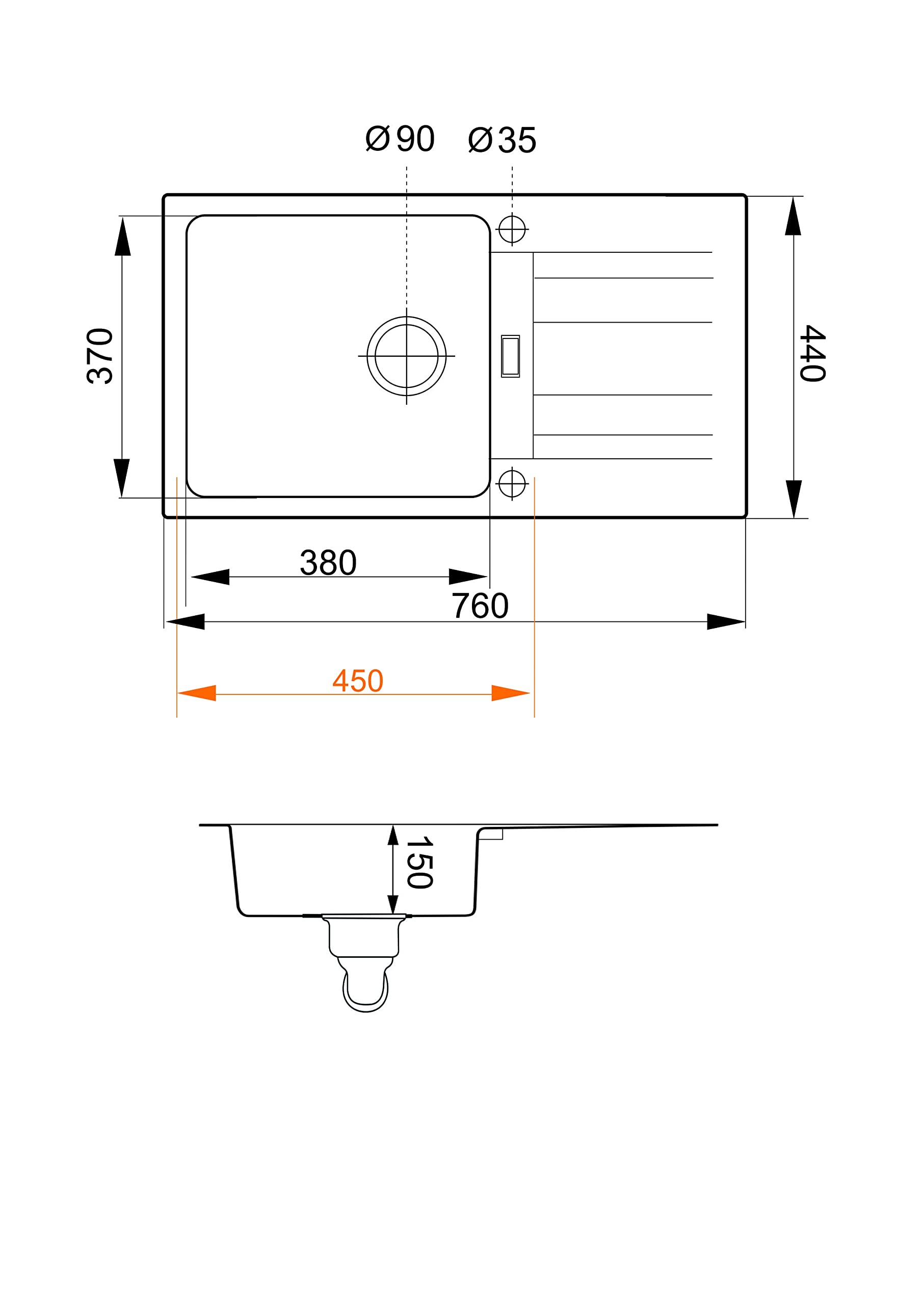 - Unkomplizierte Montage: Lässt sich einfach mit Silikon direkt auf der Arbeitsplatte installieren.