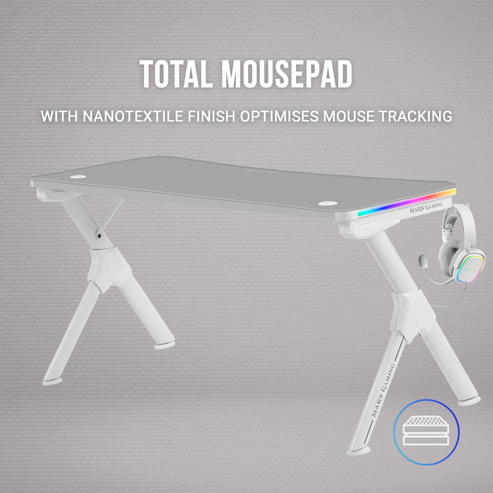 Durchdacht bis ins Detail: Von der ergonomischen Formgebung für langanhaltenden Komfort bis zum vollflächigen Nanotextil-Mauspad, das Präzision und Schutz vereint – jedes Element ist auf die Bedürfnisse von Gamern zugeschnitten. Praktische Halterungen und ein cleveres Kabelmanagement sorgen dafür, dass Ihr Platz stets aufgeräumt und funktional bleibt.