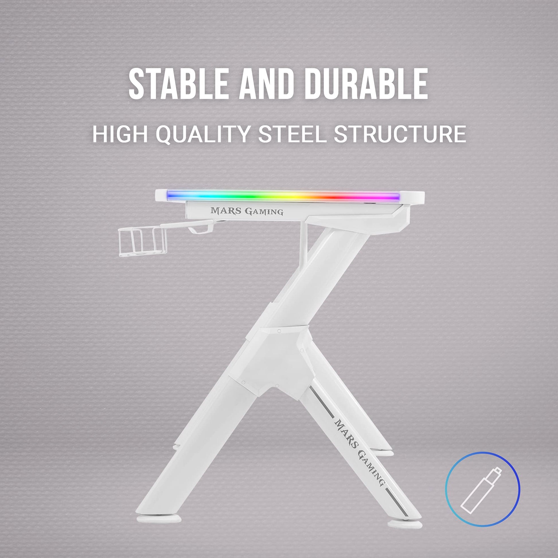 Dank seines robusten Y-förmigen Stahlrahmens und der kratzfesten Karbonfaser-Tischplatte ist der Tisch äusserst stabil und kann mit bis zu 100 kg belastet werden. Er ist also auch für intensive Gaming-Sessions mit schwerem Equipment bestens geeignet.