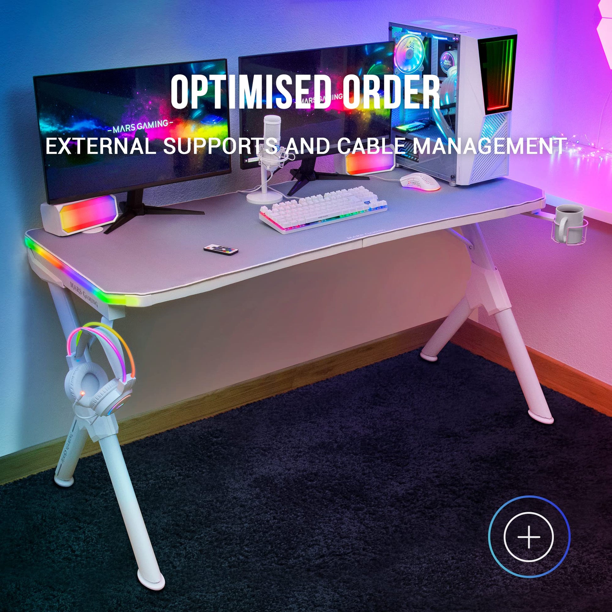 Ihr Gaming-Setup auf dem nächsten Level: Der MGD140RGBW ist mehr als nur ein Tisch – er ist die Kommandozentrale für Ihr Gaming. Die beeindruckende ARGB-Beleuchtung schafft eine immersive Atmosphäre, die Sie vollständig in Ihr Spiel eintauchen lässt und sich bequem per Fernbedienung an Ihre Stimmung anpassen lässt.