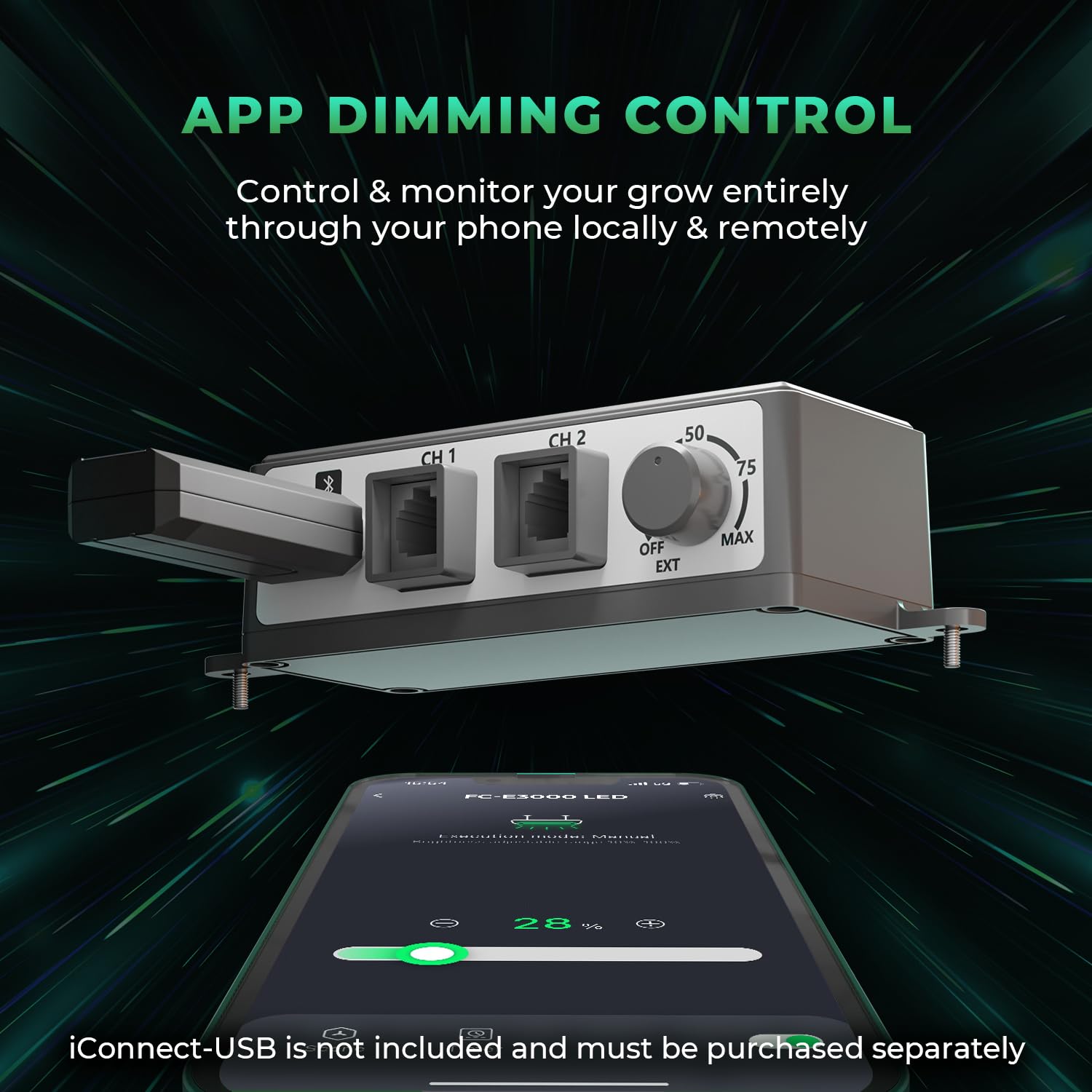 Ja, die Lampe verfügt über einen integrierten Dimmknopf, mit dem Sie die Helligkeit präzise an die Bedürfnisse Ihrer Pflanzen in jeder Wachstumsphase – von der Keimung bis zur Blüte – anpassen können. Für eine erweiterte Steuerung ist sie zudem mit dem iConnect Controller kompatibel.