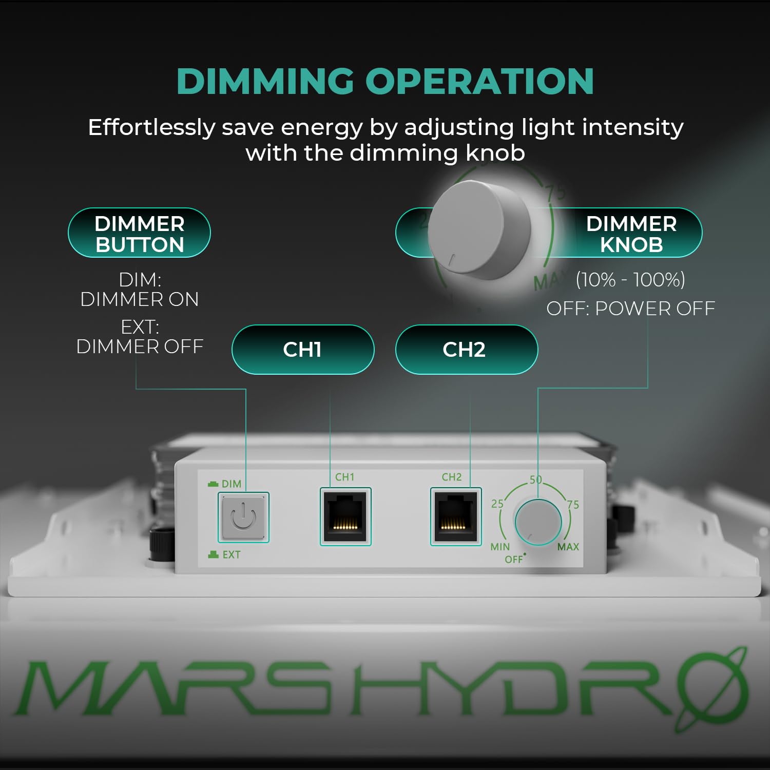 Die volle Kontrolle durch die Dimmfunktion erlaubt es Ihnen, die Beleuchtung perfekt auf die jeweilige Entwicklungsphase Ihrer Pflanzen abzustimmen. Das vollständige Lichtspektrum stimuliert eine schnelle Reaktion der Pflanzen, fördert ein gesundes Wachstum und trägt massgeblich zur Steigerung des Ertrags und der Erntequalität bei.
