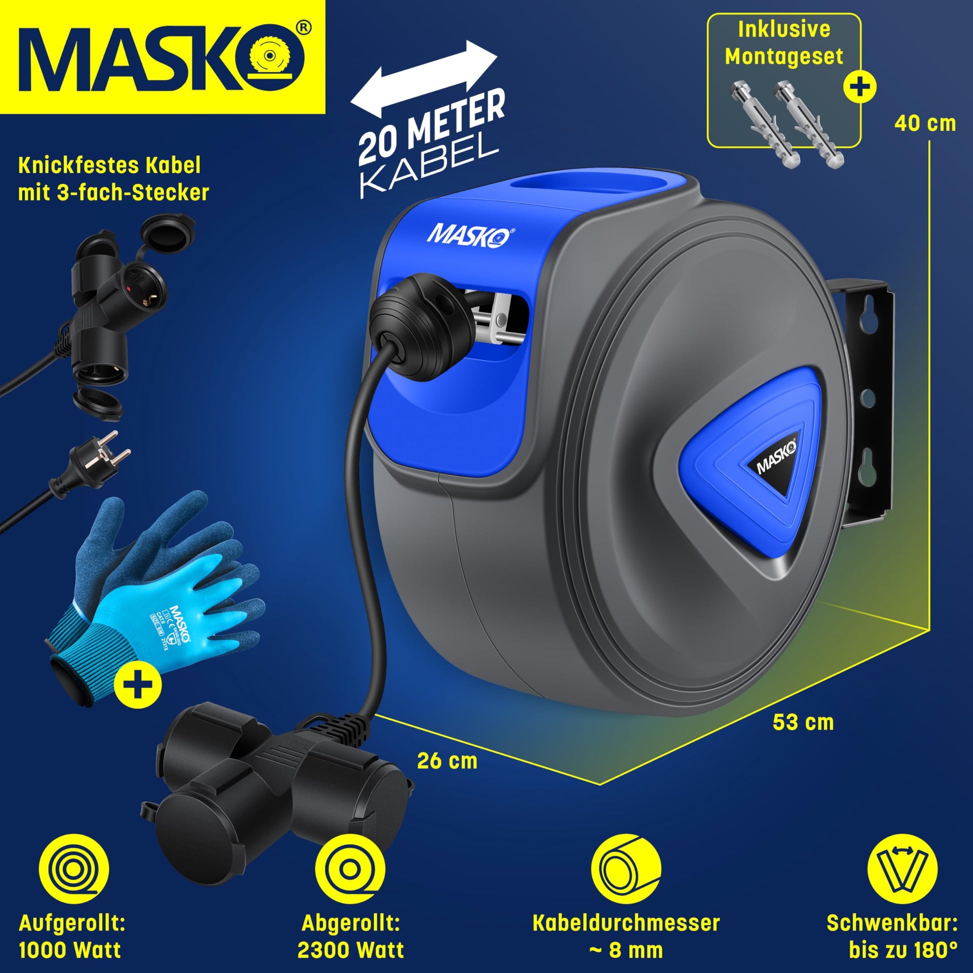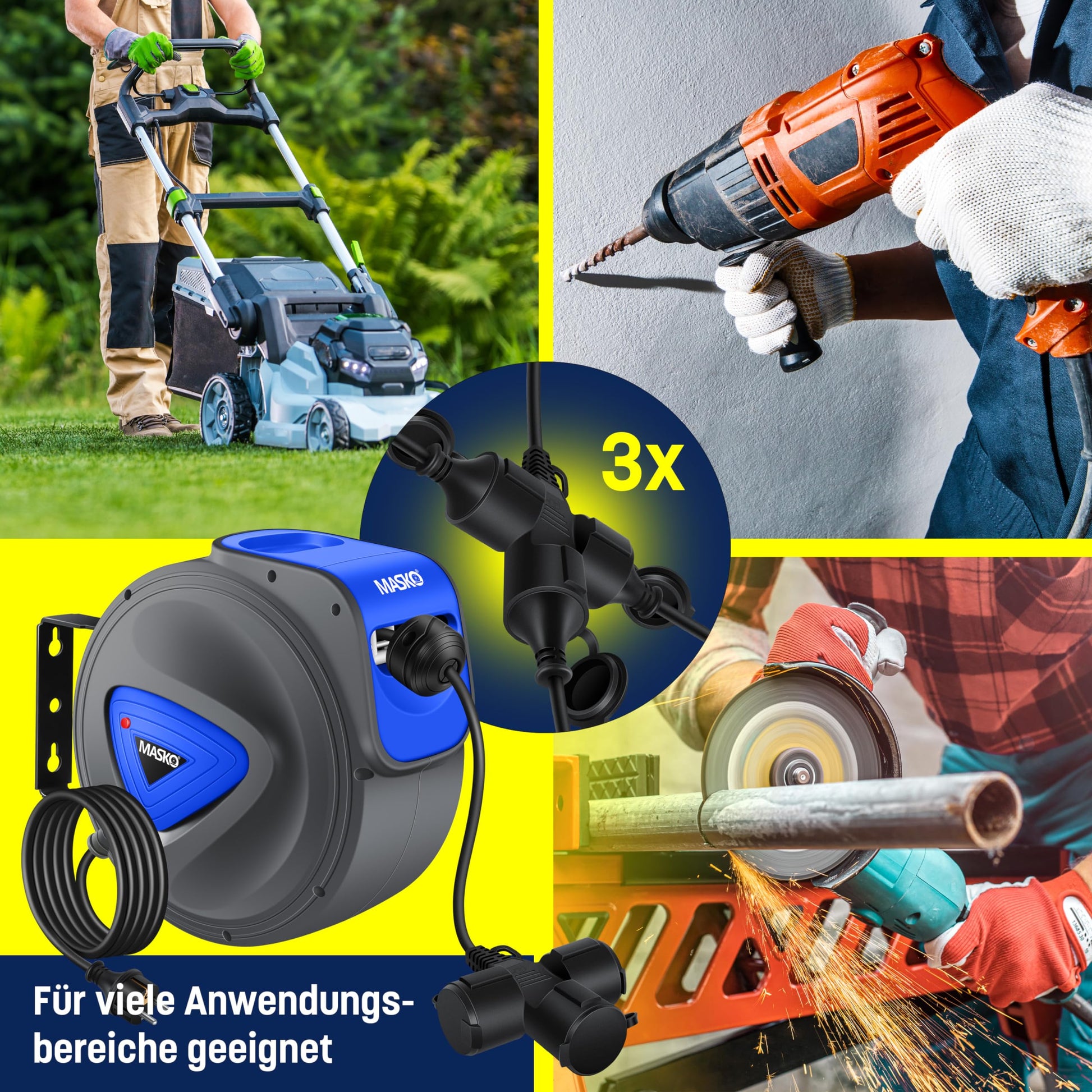 MASKO Automatik Kabeltrommel 20m Wandhalterung 3-fach