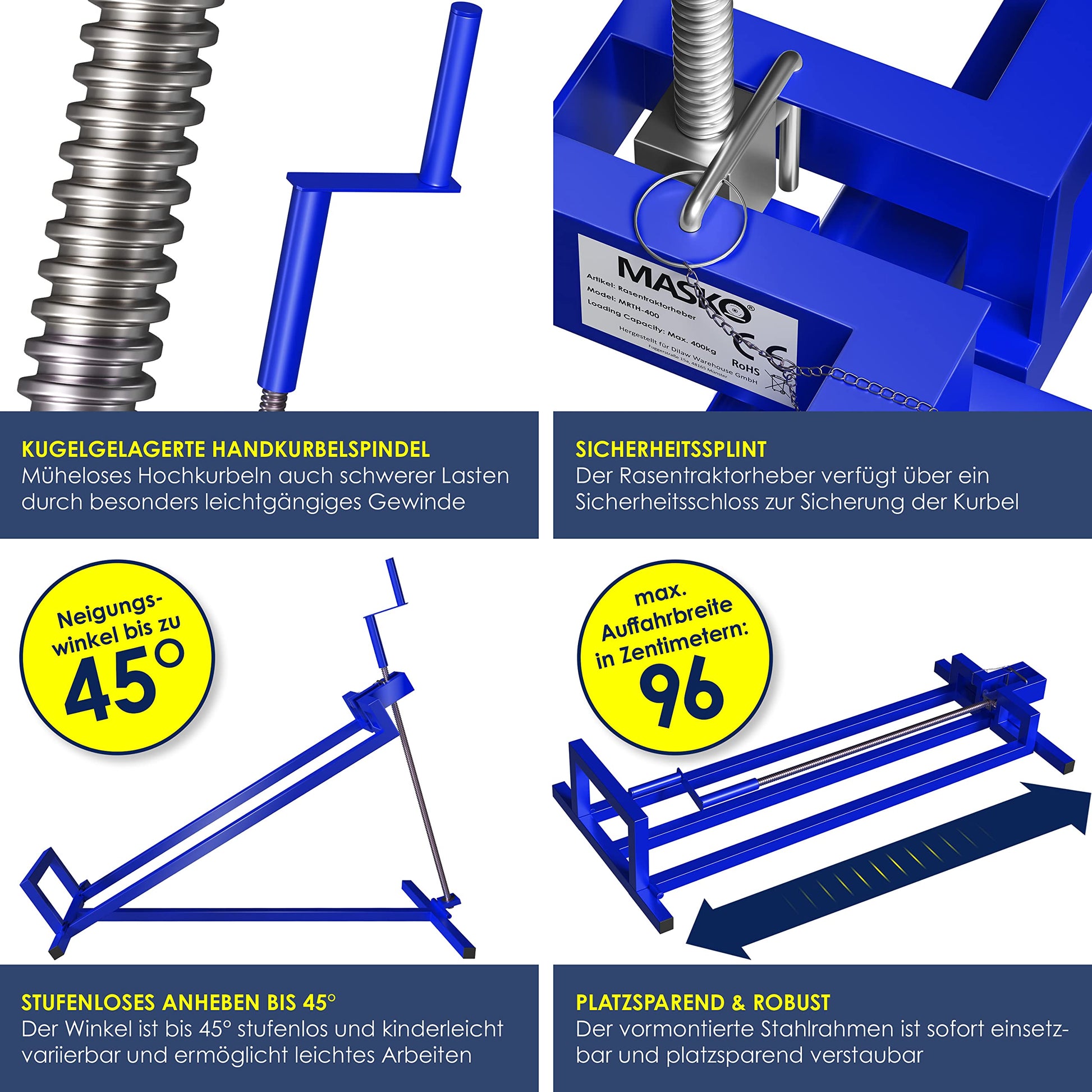 MASKO® Rasentraktorheber XXL 450 kg Hebebühne für Aufsitzmäher - Blau
