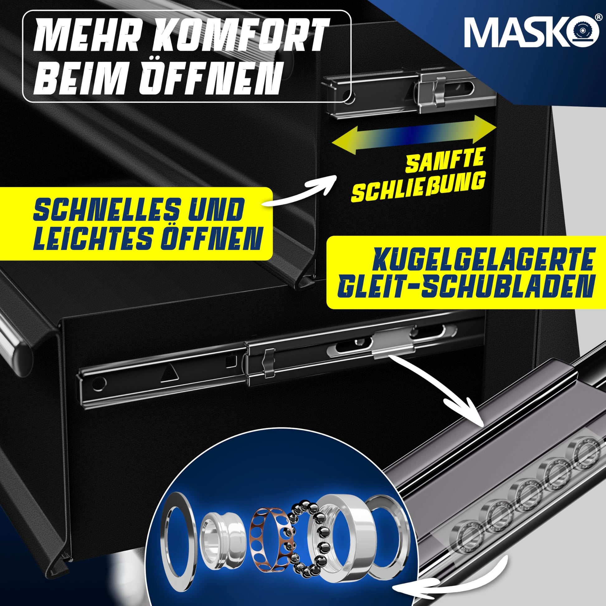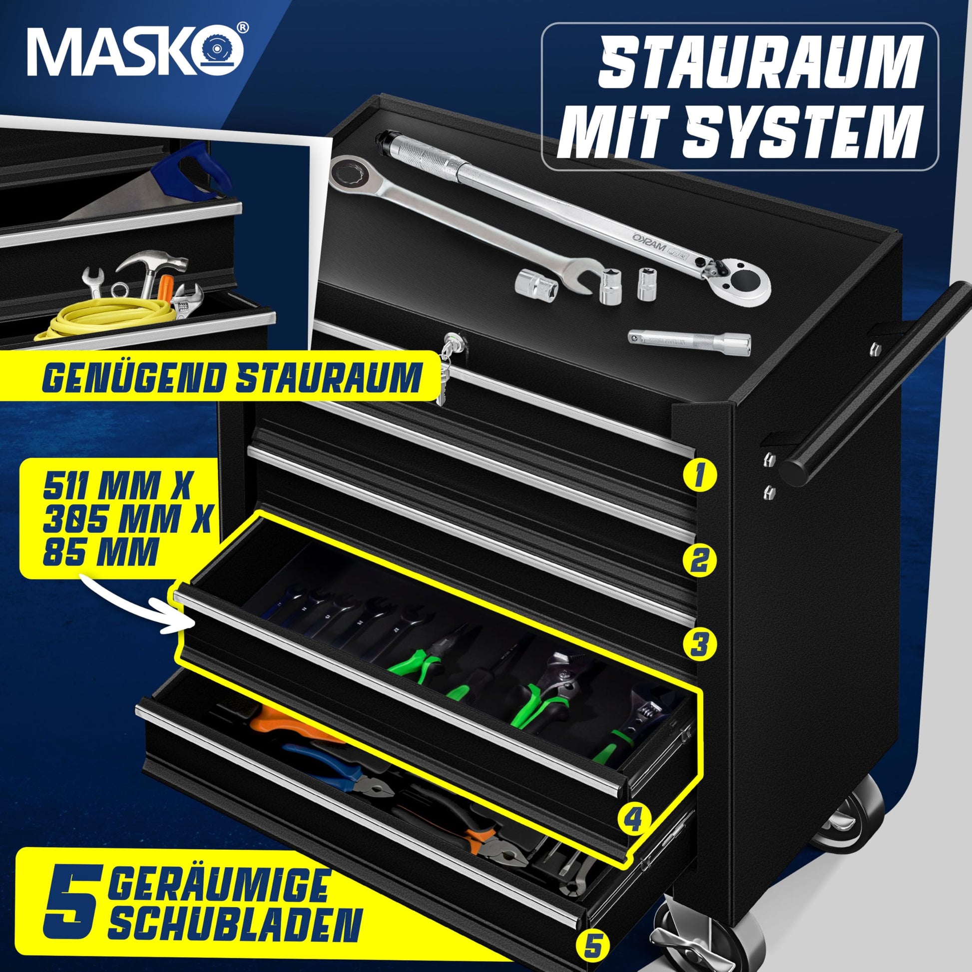 MASKO Werkstattwagen 5 Schubladen Schwarz Abschliessbar