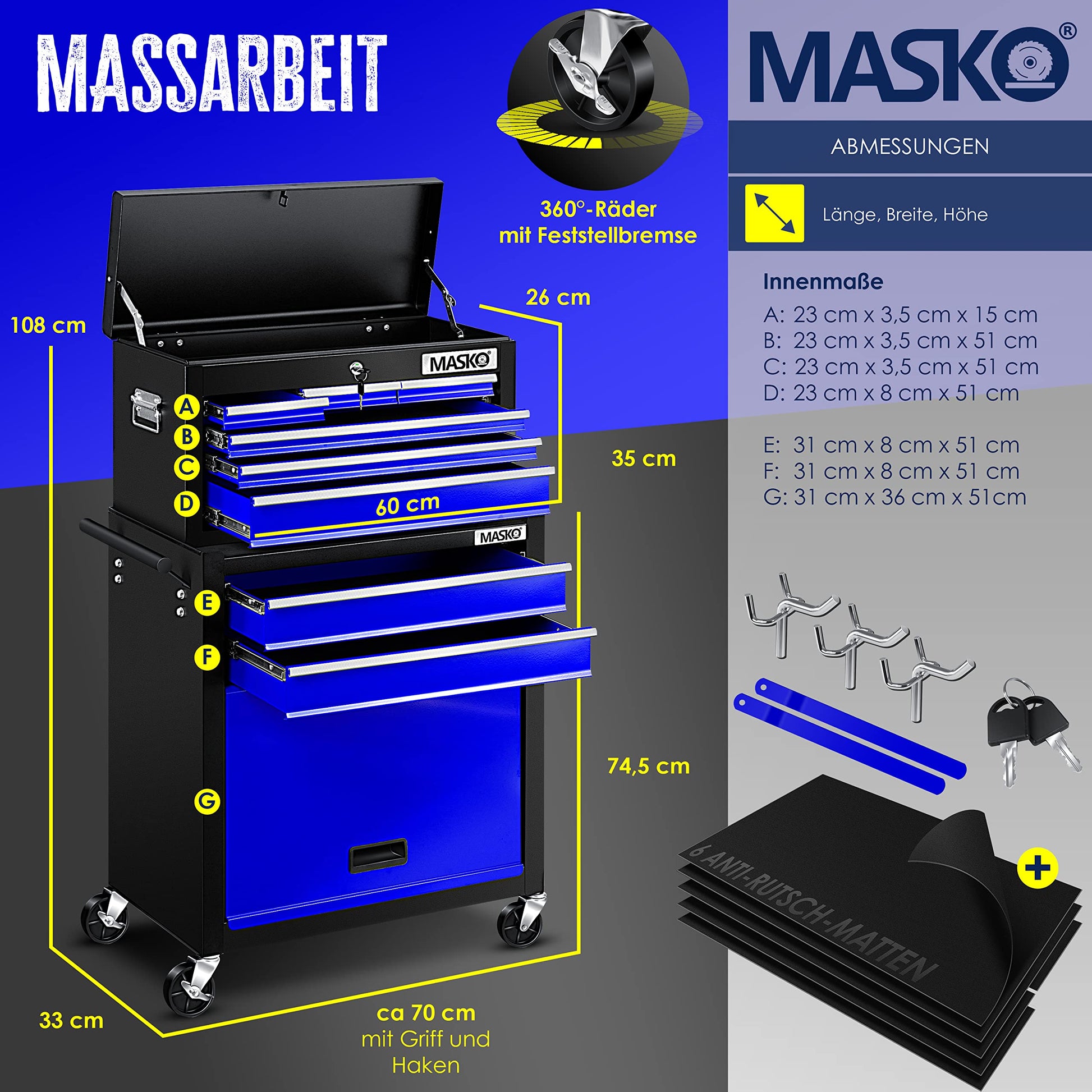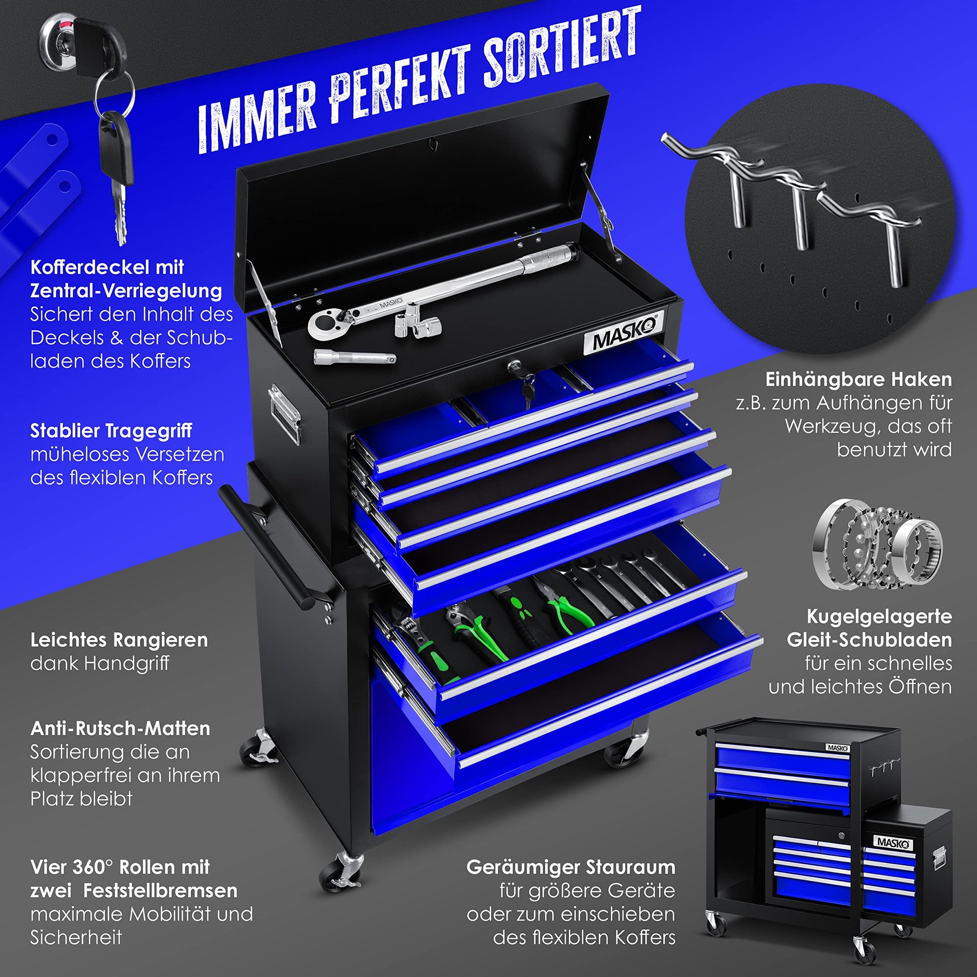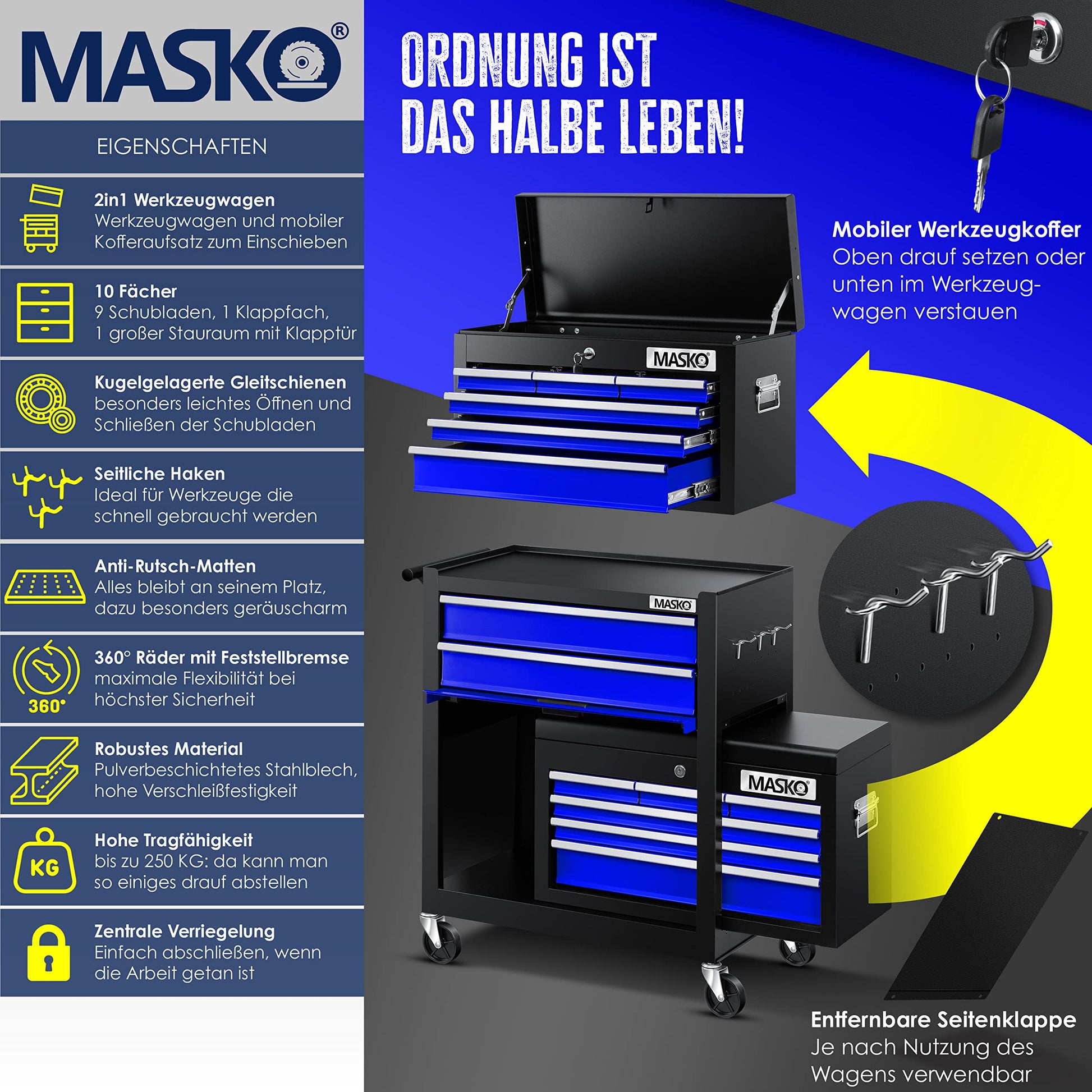 MASKO® Werkstattwagen 9 Fächer abschliessbar - Blau