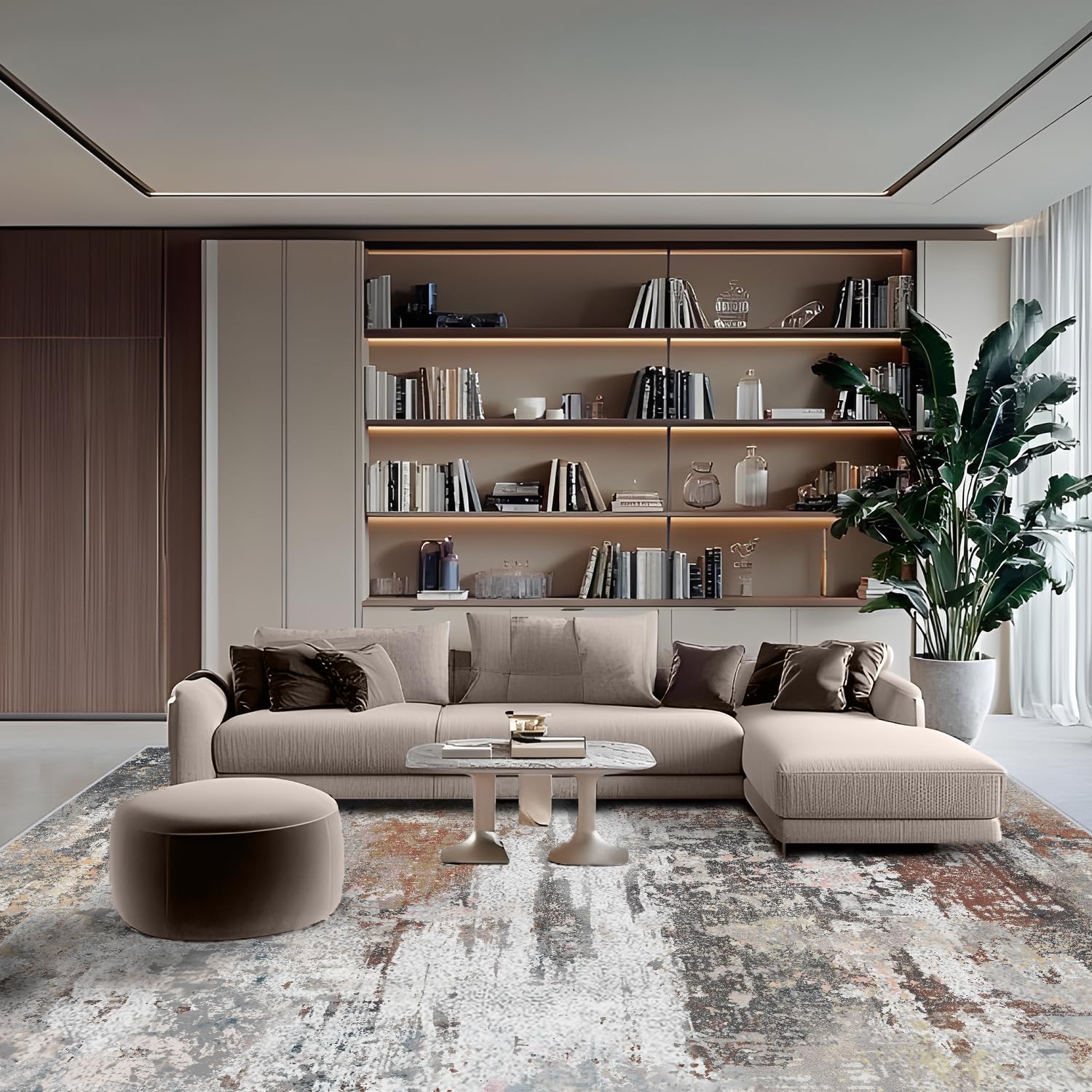 - Design: Hochwertiger Kurzflor-Teppich mit einem eleganten, abstrakten Muster.
