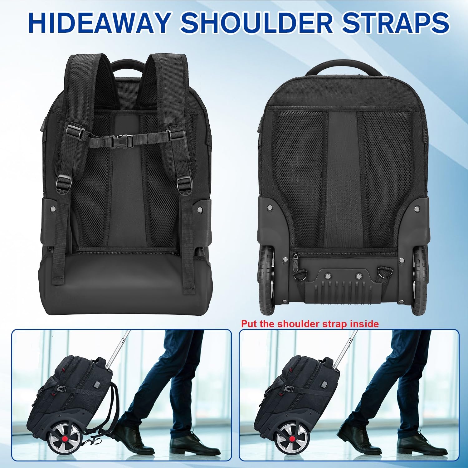 MATEIN Trolley Rucksack 17.3 Zoll mit Rollen – Schwarz für Reise & Arbeit