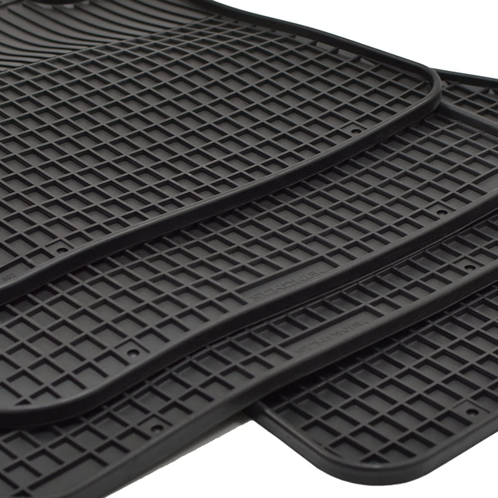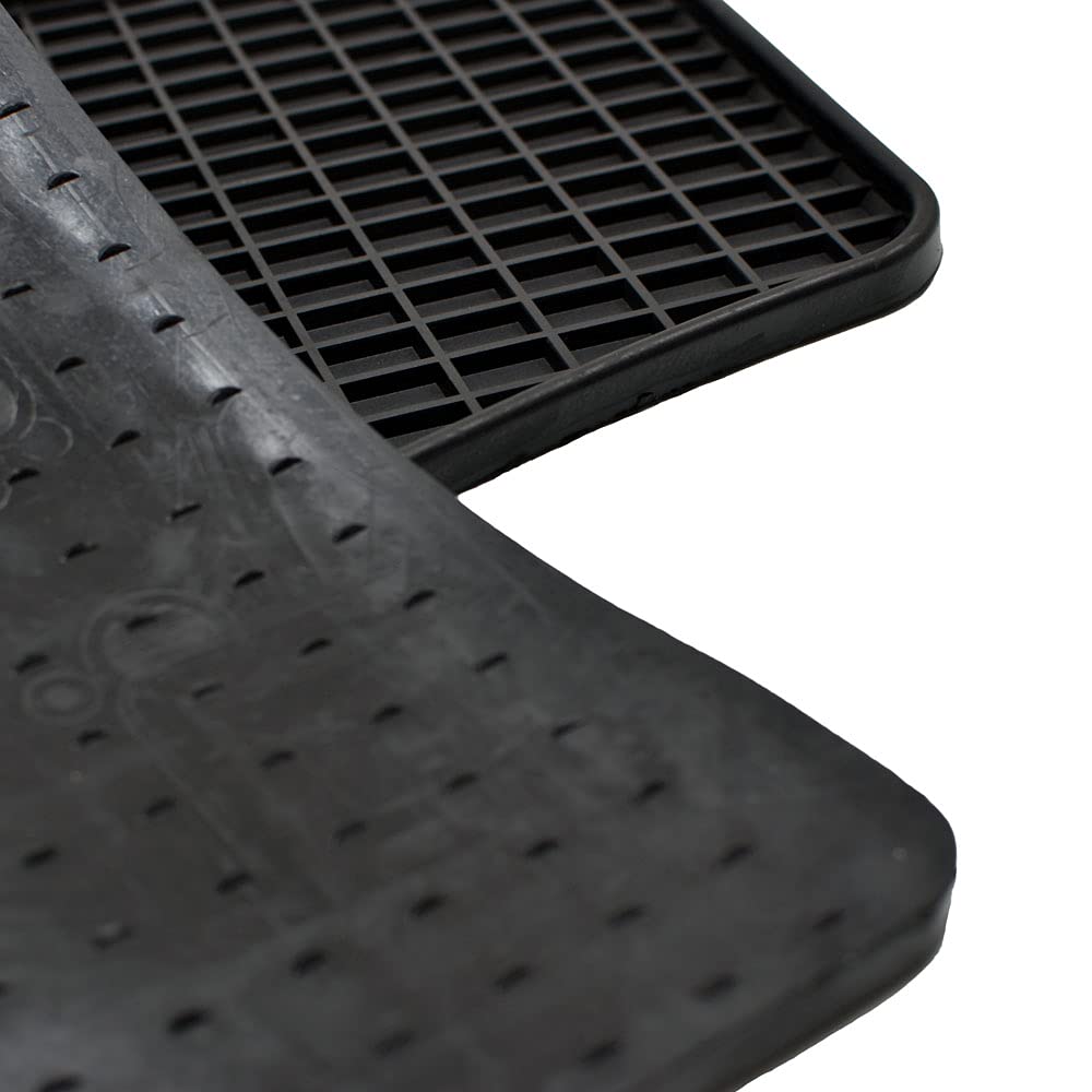 Die Fussmatten verfügen über einen ca. 1 cm hohen, umlaufenden Rand, der Schmutz, Schnee und Flüssigkeiten zuverlässig auffängt. Das robuste, wasserundurchlässige Gummimaterial schützt den originalen Fahrzeugteppich ganzjährig vor Nässe und Abnutzung.
