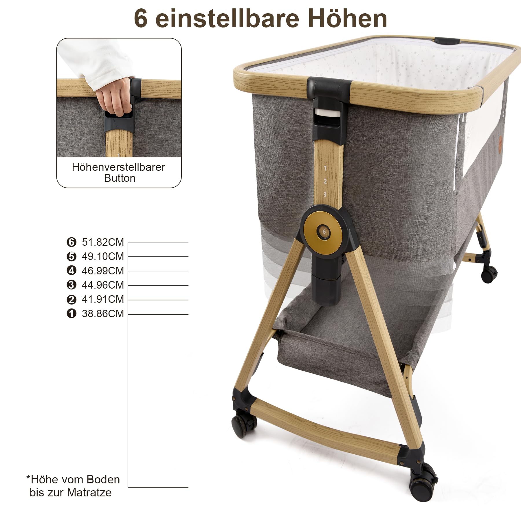 - Flexible Nutzung: Als Beistellbett direkt am Elternbett oder als eigenständiger Stubenwagen verwendbar.