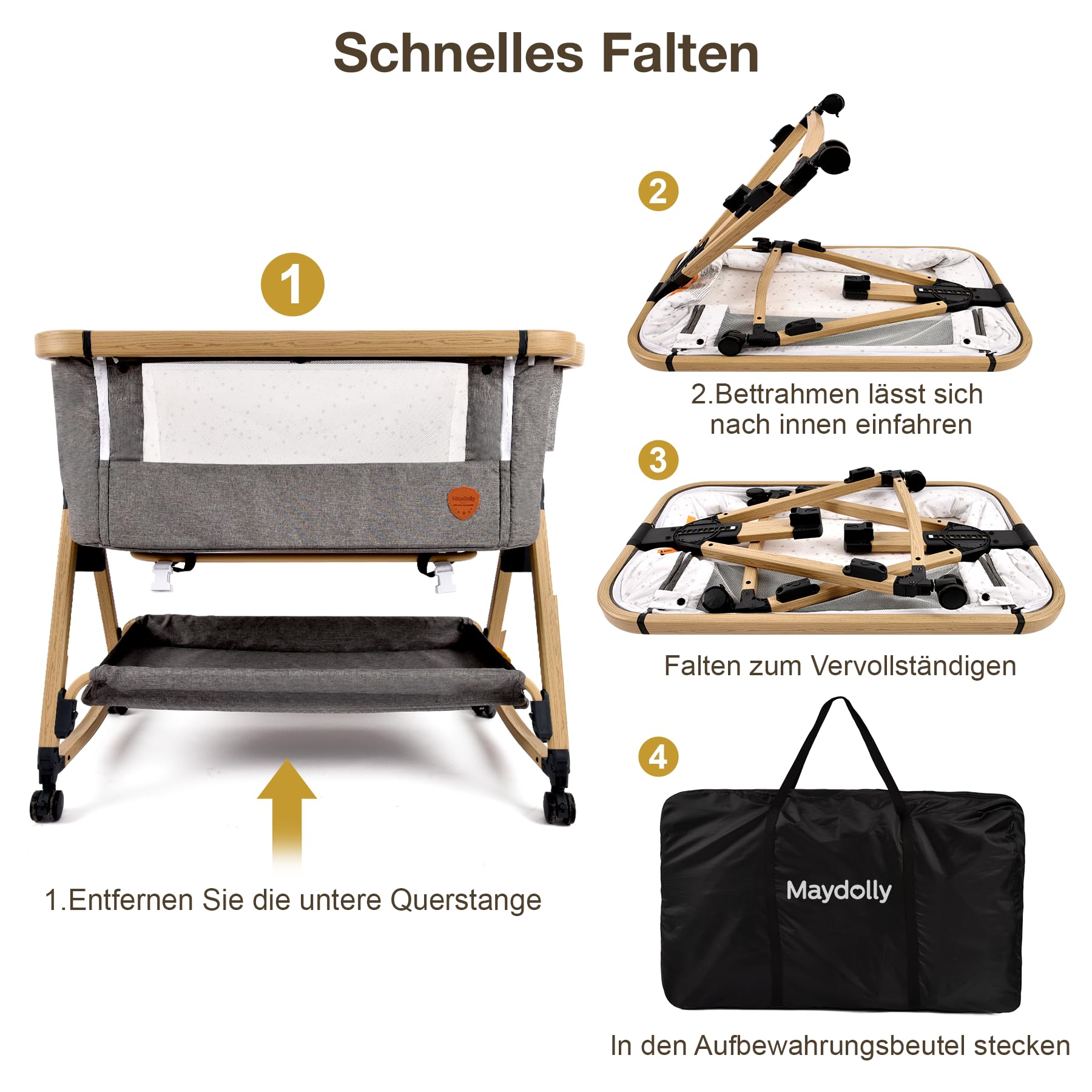 Maydolly Beistellbett 3in1 Babybett tragbar Stubenwagen – Grau