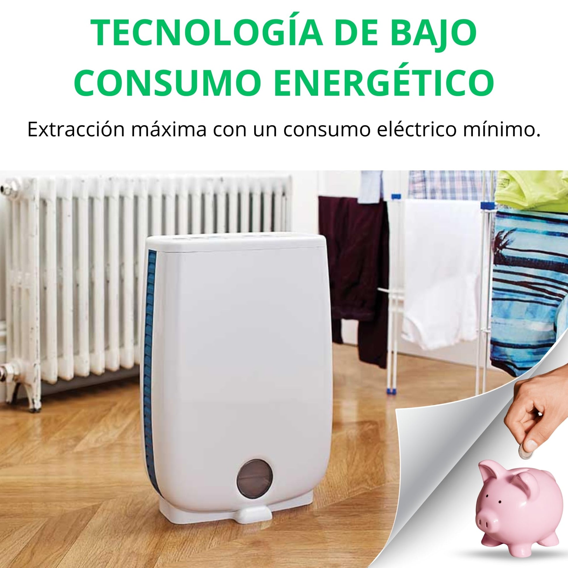 Die maximale Leistungsaufnahme beträgt 650 Watt. Dank des integrierten digitalen Hygrostats schaltet sich das Gerät jedoch automatisch ab, sobald die gewünschte Luftfeuchtigkeit erreicht ist, und läuft nur bei Bedarf. Dies sorgt für einen energieeffizienten Betrieb.