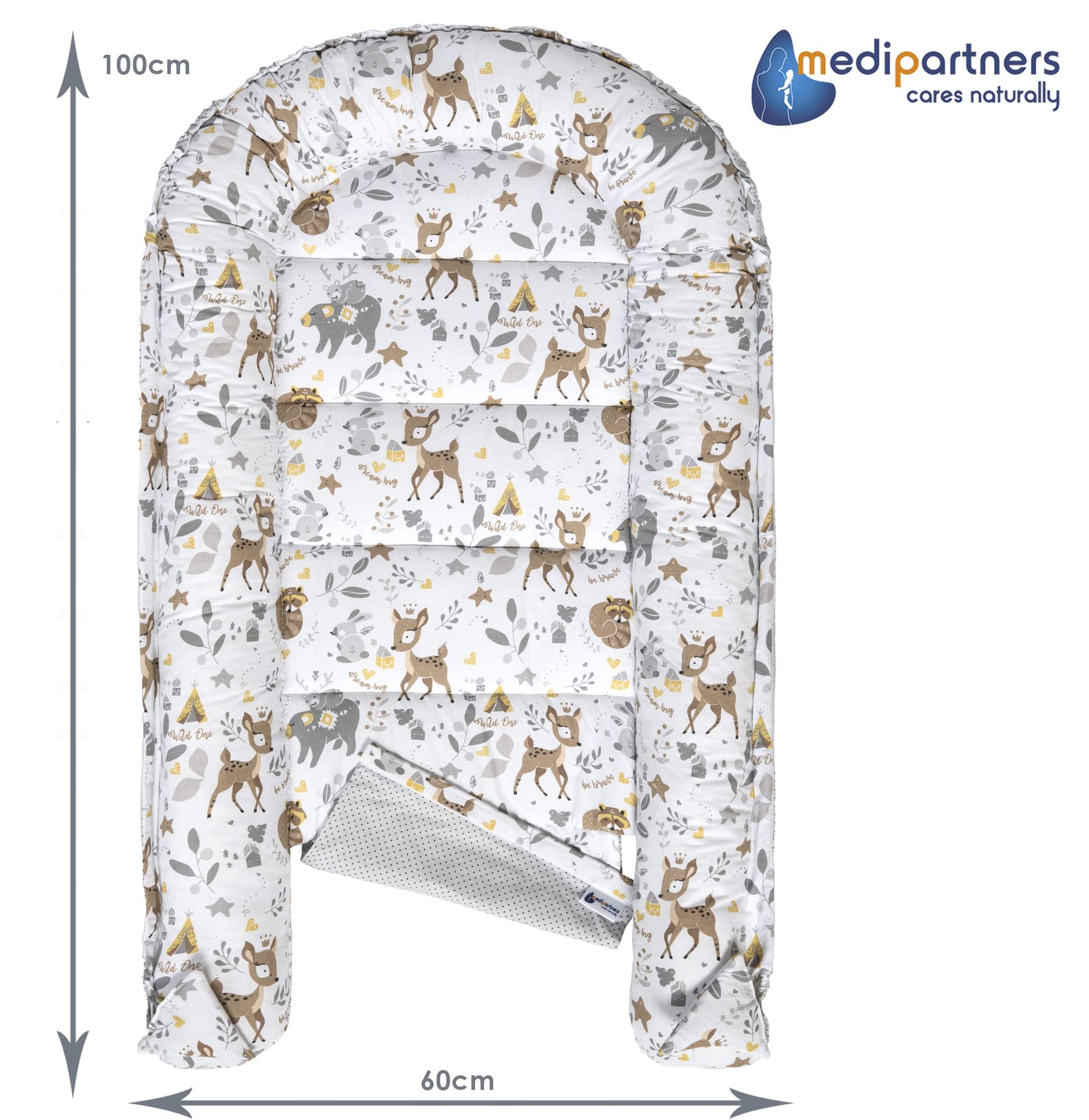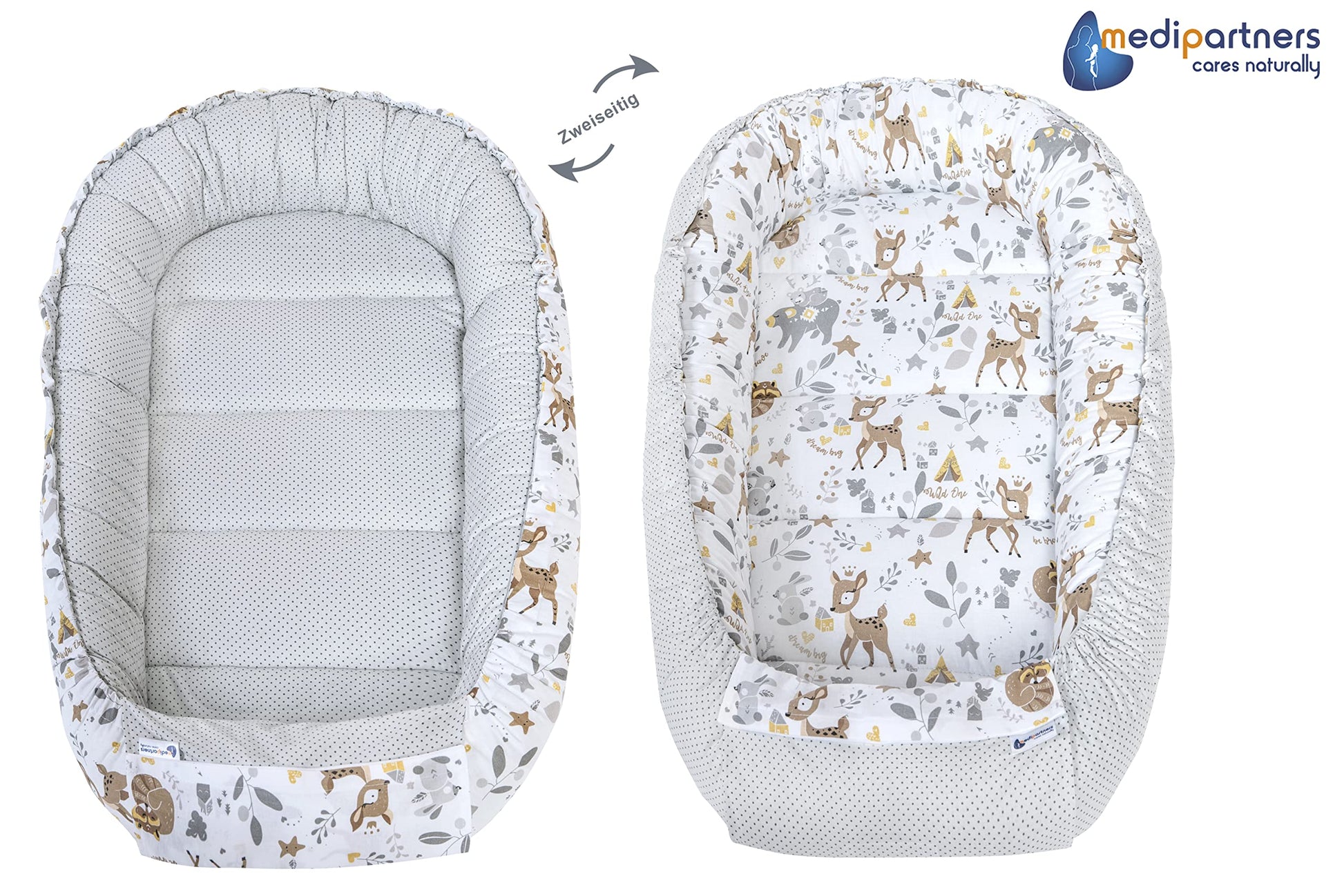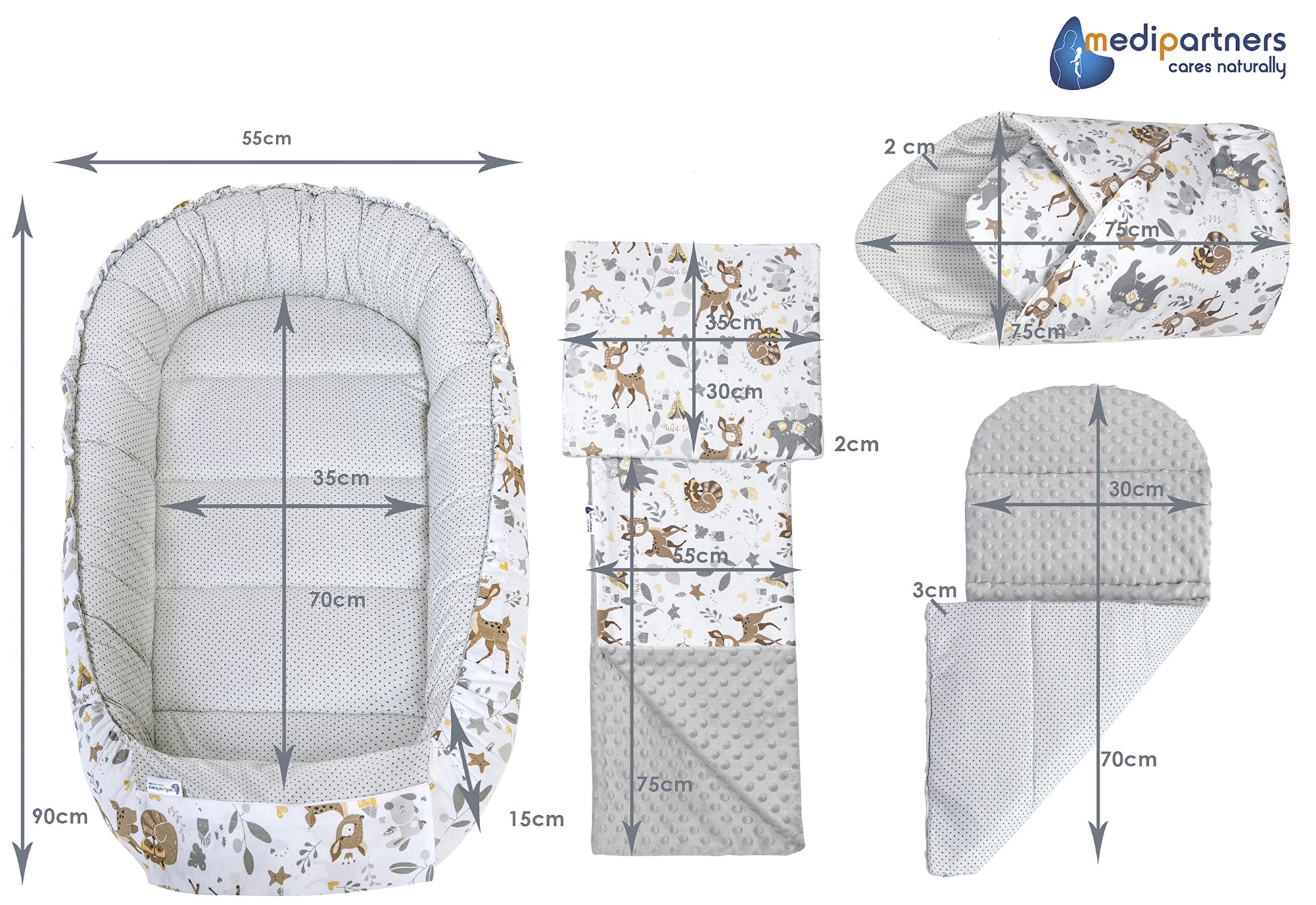Medi Partners Babynest Set 5-teilig – Reh mit Grauem Minky