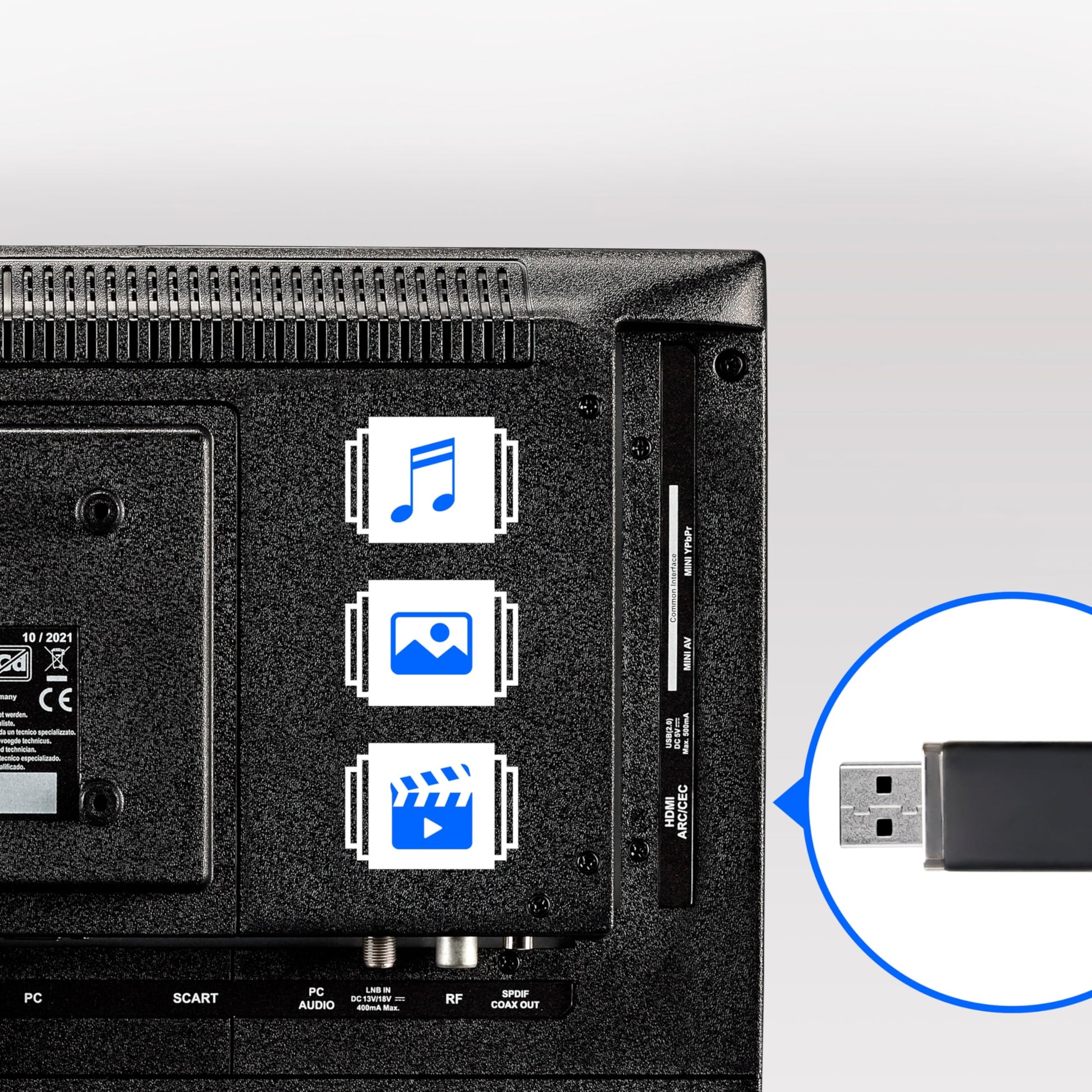 - Mediaplayer-Funktion: Über den USB-Anschluss können Sie eigene Videos und Fotos unkompliziert auf dem Bildschirm abspielen.