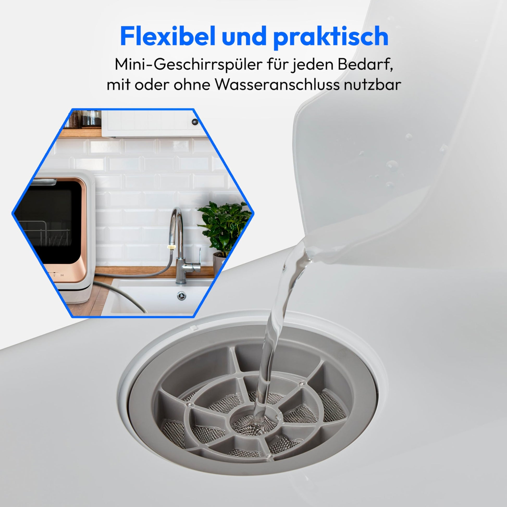 Dieser Mini-Geschirrspüler ist somit der perfekte Helfer für jeden Haushalt, der Wert auf Komfort, Effizienz und Unabhängigkeit legt.