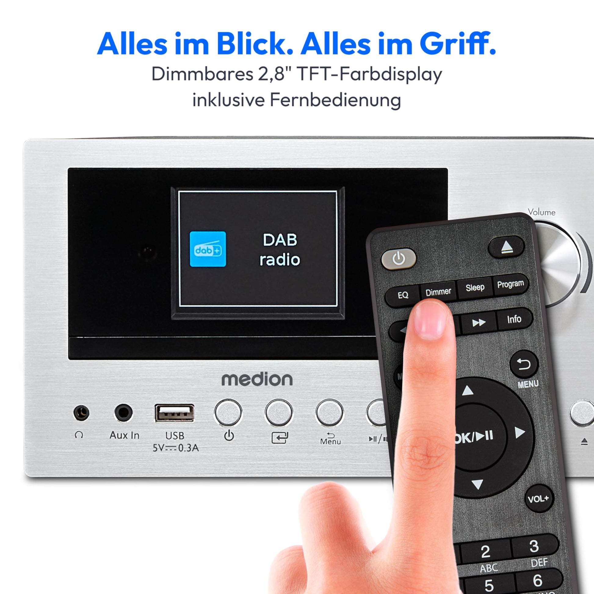 - Umfassender Empfang: Integriertes Internet-, DAB+- und PLL-UKW-Stereo-Radio mit jeweils 40 Speicherplätzen für Ihre Lieblingssender.