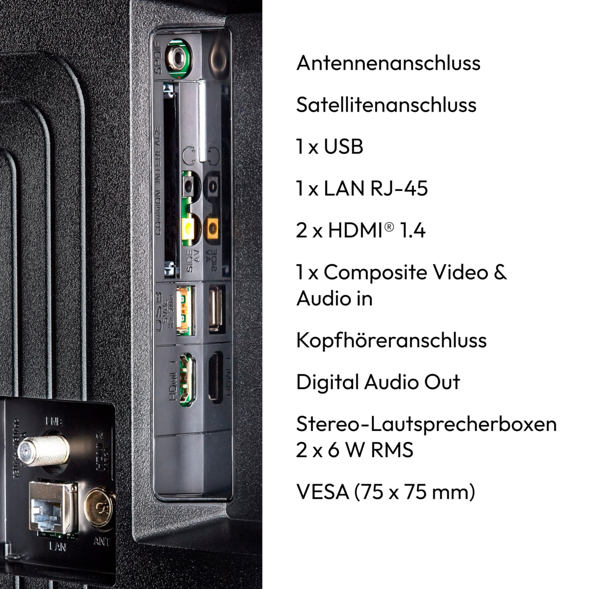 - Moderne Technologie: Unterstützt High Dynamic Range (HDR) für verbesserte Kontraste und PVR-ready für die Aufnahme von Sendungen.