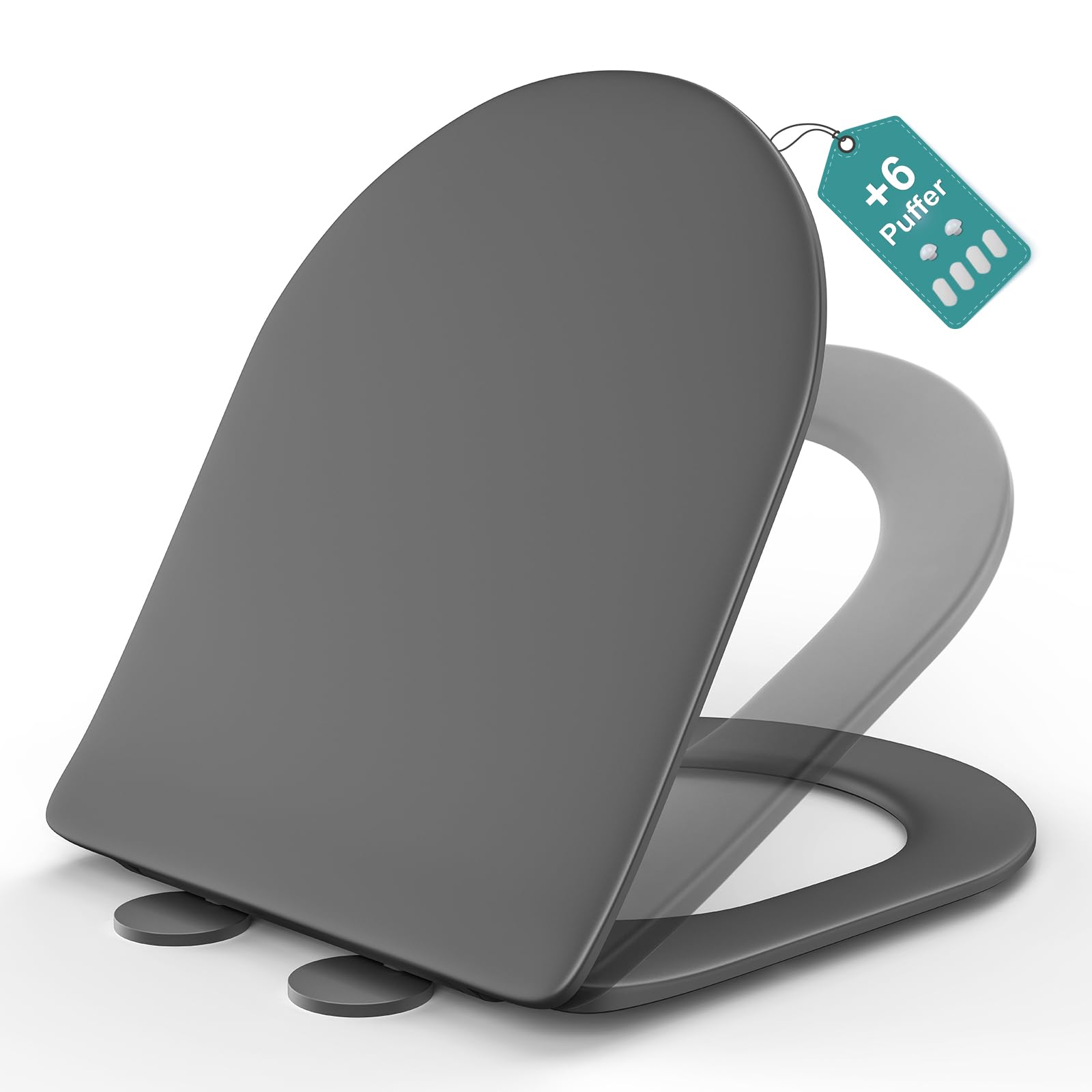 MEEJEE WC Sitz D Form Absenkautomatik Duroplast - Grau