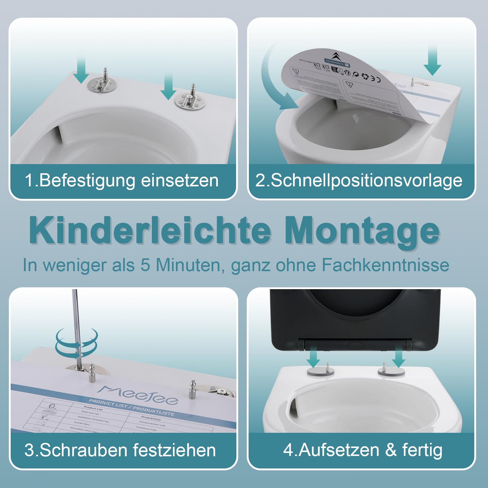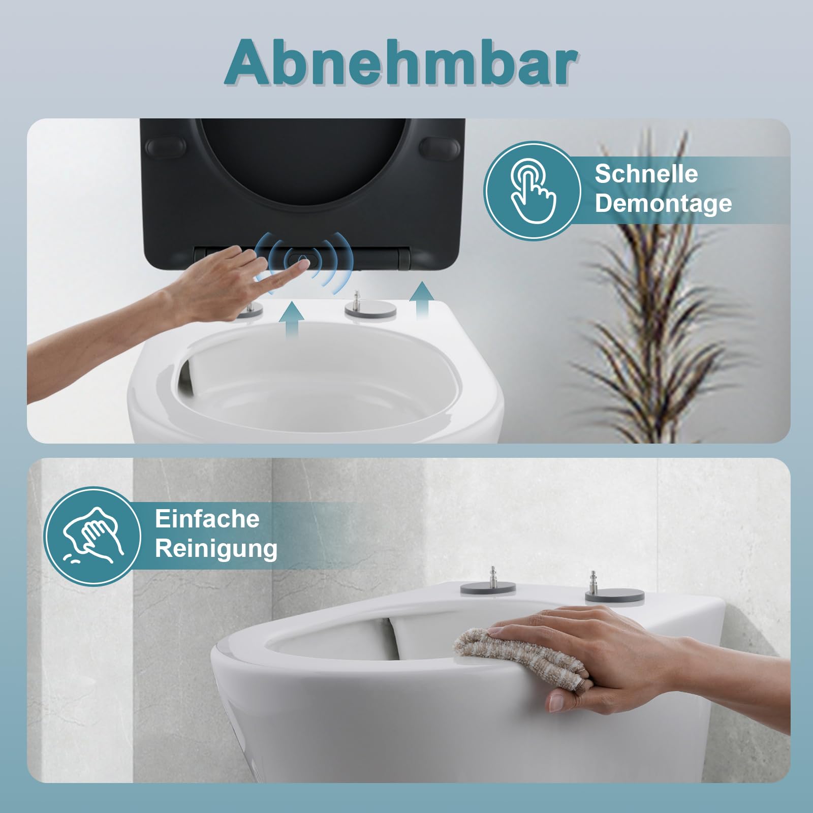 Die Montage ist denkbar einfach. Mit dem innovativen Befestigungsset lässt sich der Toilettensitz schnell und unkompliziert von oben anbringen, was einen stabilen und wackelfreien Halt garantiert. Für eine gründliche und mühelose Hygiene sorgt die praktische Quick-Release-Funktion: Per Knopfdruck können Sie den gesamten Sitz abnehmen, die Keramik reinigen und ihn danach einfach wieder aufstecken.