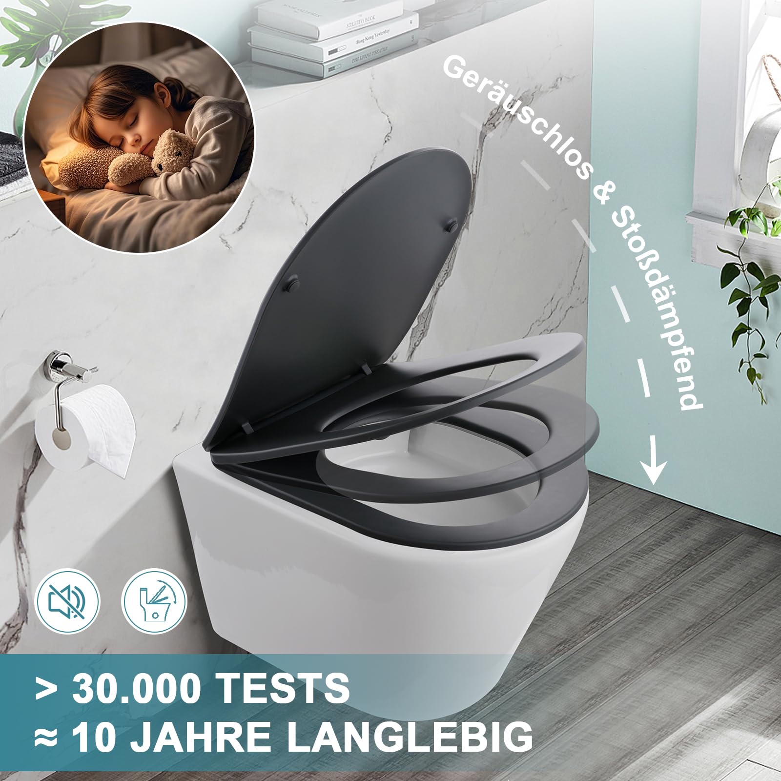 Verleihen Sie Ihrem Badezimmer mit diesem D-förmigen WC-Sitz in elegantem Grau modernen Komfort und eine ruhige Atmosphäre. Er kombiniert ein stilvolles Design mit durchdachter Funktionalität für den täglichen Gebrauch.