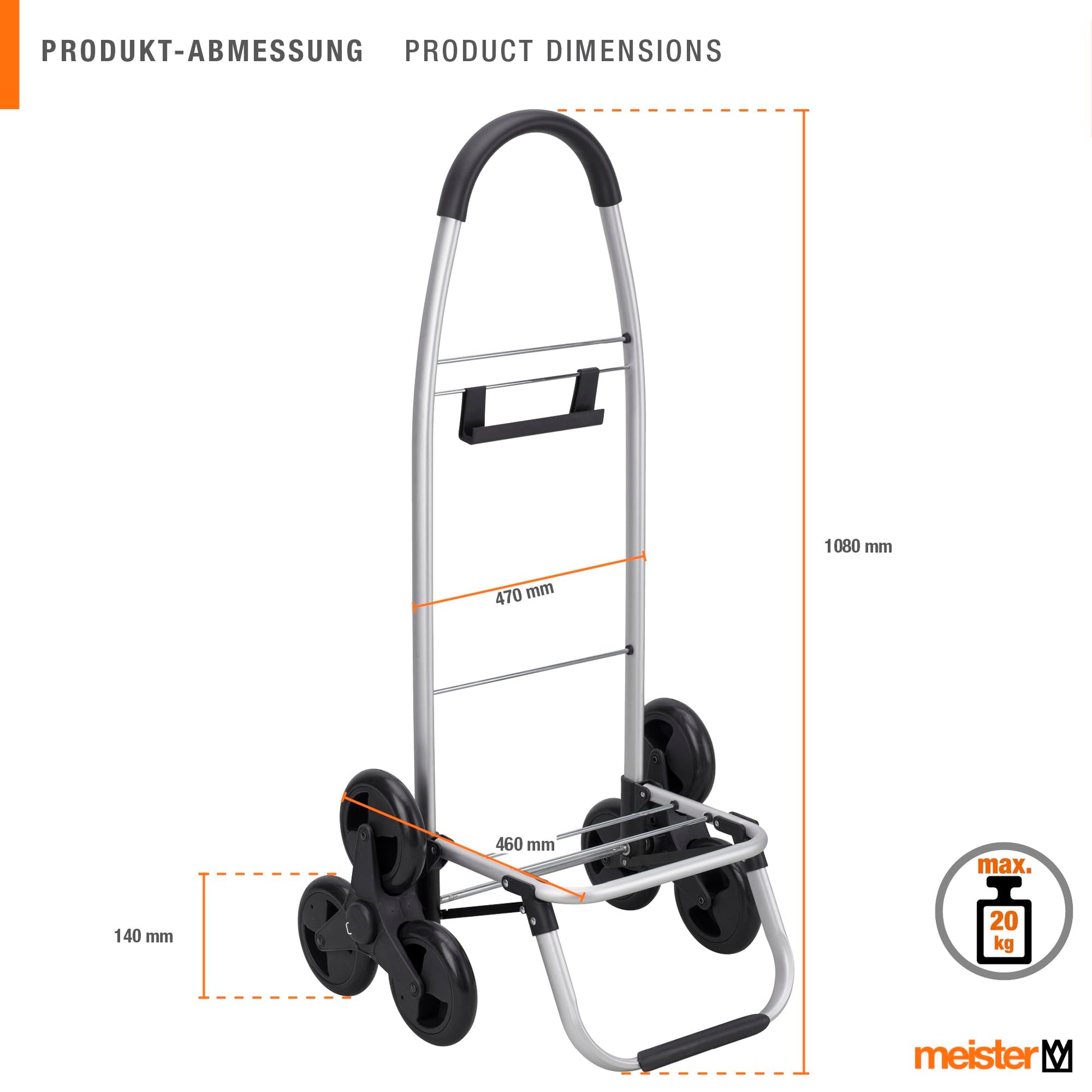Meister Treppensteiger Einkaufstrolley Schwarz 54+5 L Einkaufsroller