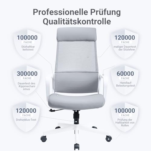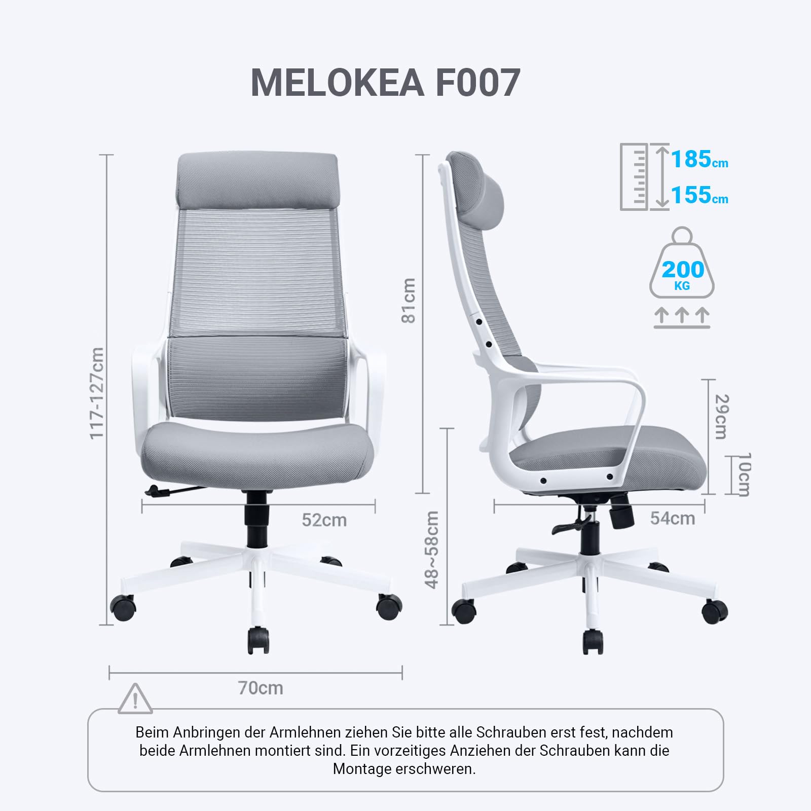 MELOKEA Ergonomischer Bürostuhl 200kg, Mesh, Kopfstütze - Grau
