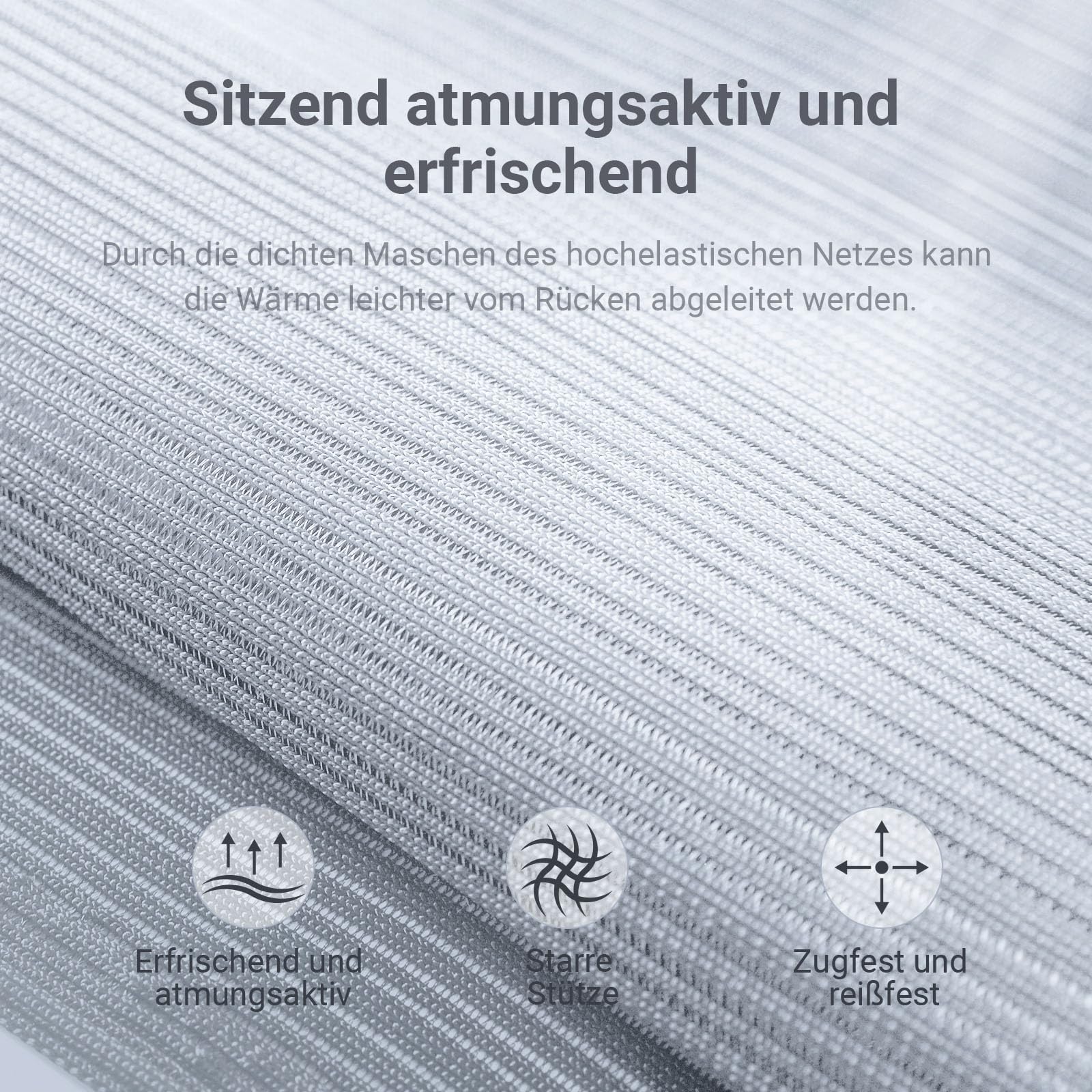 - Hoher Sitzkomfort: Eine atmungsaktive Netz-Rückenlehne sorgt für eine angenehme Belüftung, während das 10 cm dicke Sitzkissen aus verbessertem Schaumstoff gleichzeitig weich und stützend wirkt.