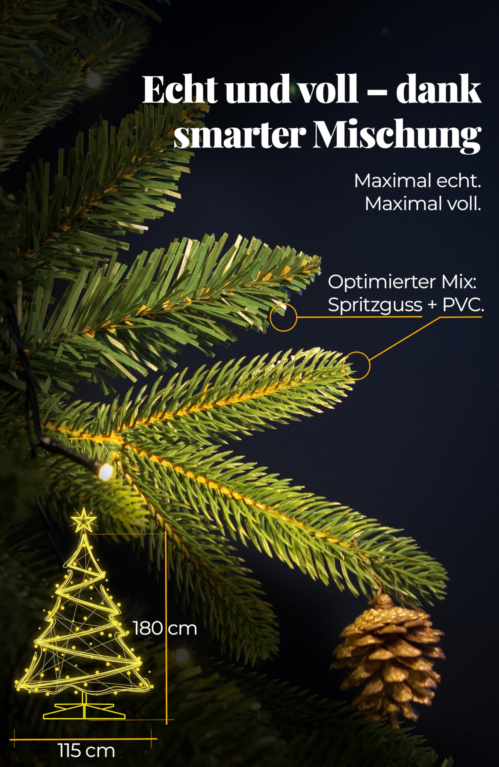 - Naturgetreue Optik: Mit einer stattlichen Grösse von 180 x 115 cm und 850 sorgfältig gefertigten Spitzen wirkt dieser Baum ausserordentlich realistisch und fügt sich harmonisch in Ihre Weihnachtsdekoration ein.