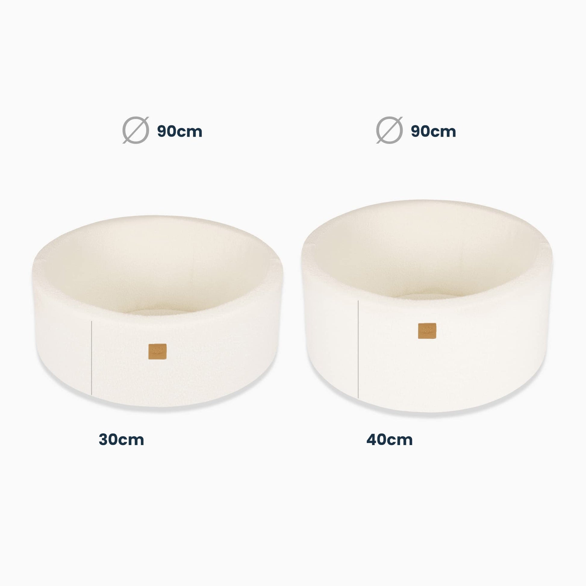 - Design & Material: Runder Pool aus weichem Schaumstoff mit einem hochwertigen, abnehmbaren Bezug aus elegantem Boucle-Stoff in Weiss.