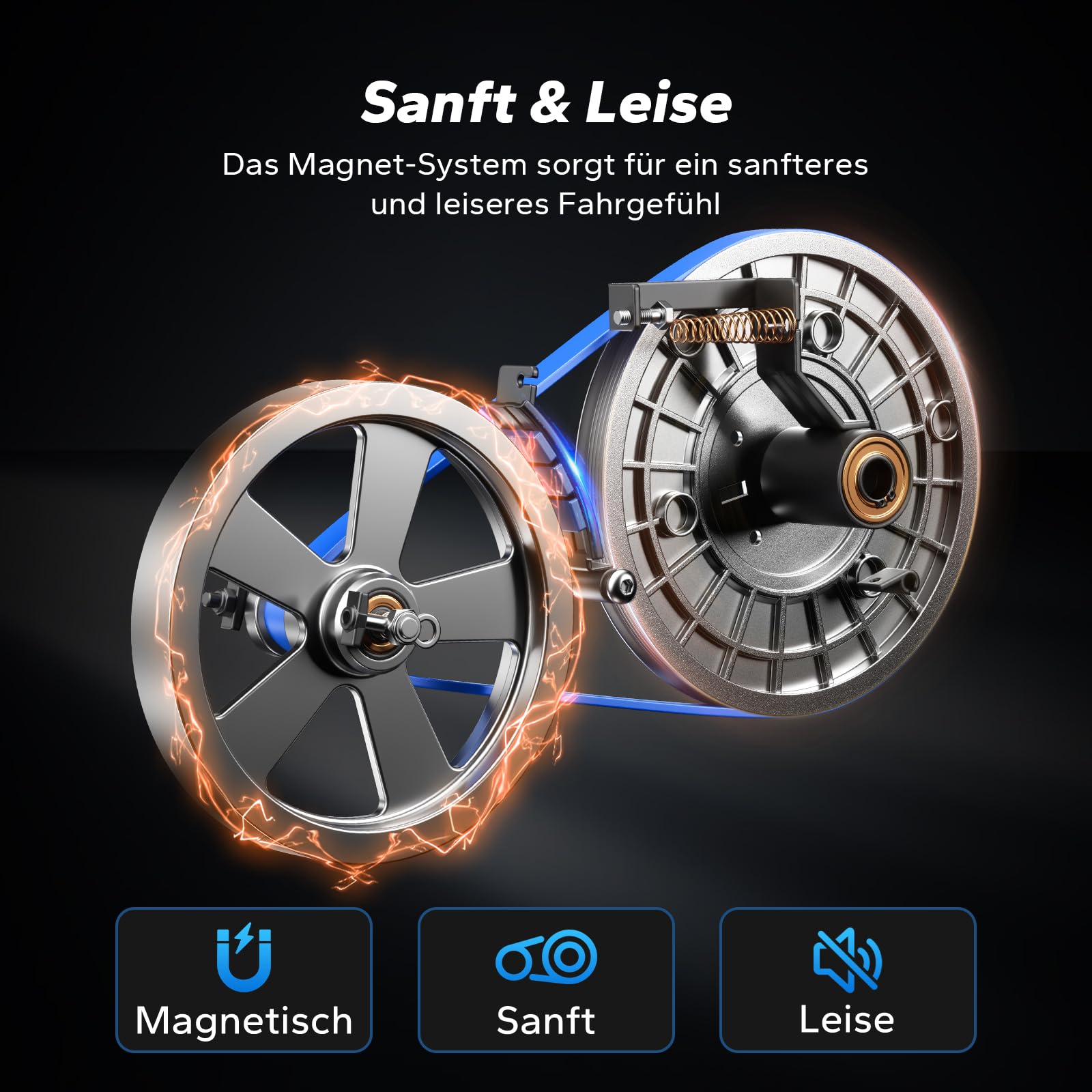 - Verbessertes Magnet-Widerstandssystem: Geniessen Sie ein extrem leises und flüssiges Trainingserlebnis dank des magnetischen Systems mit 16 einstellbaren Widerstandsstufen für ein individuell anpassbares Workout.