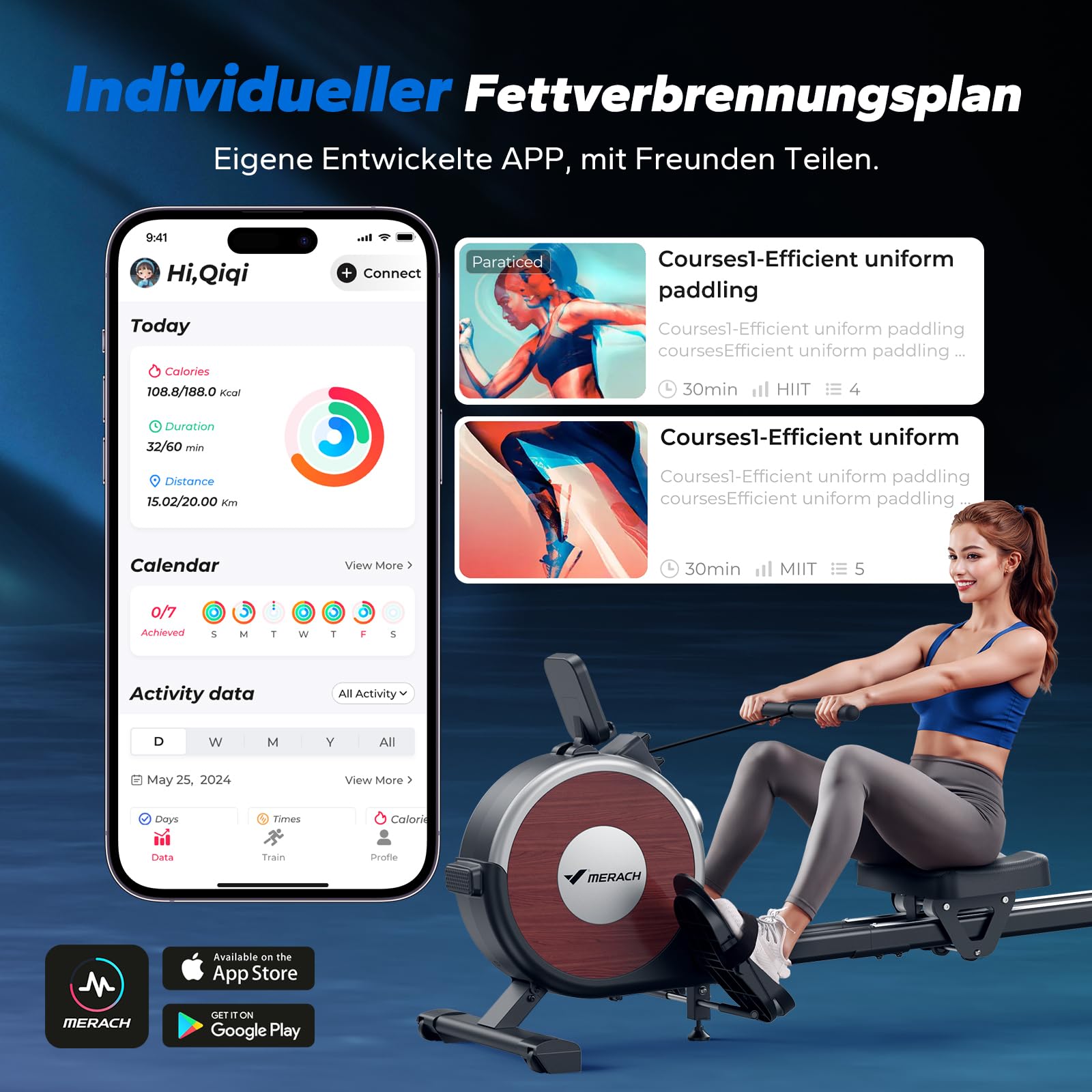 Entdecken Sie das MERACH Rudergerät, Ihr idealer Partner für ein effektives und intelligentes Training in den eigenen vier Wänden. Es kombiniert moderne Technologie mit stabiler Bauweise für ein erstklassiges Trainingserlebnis.