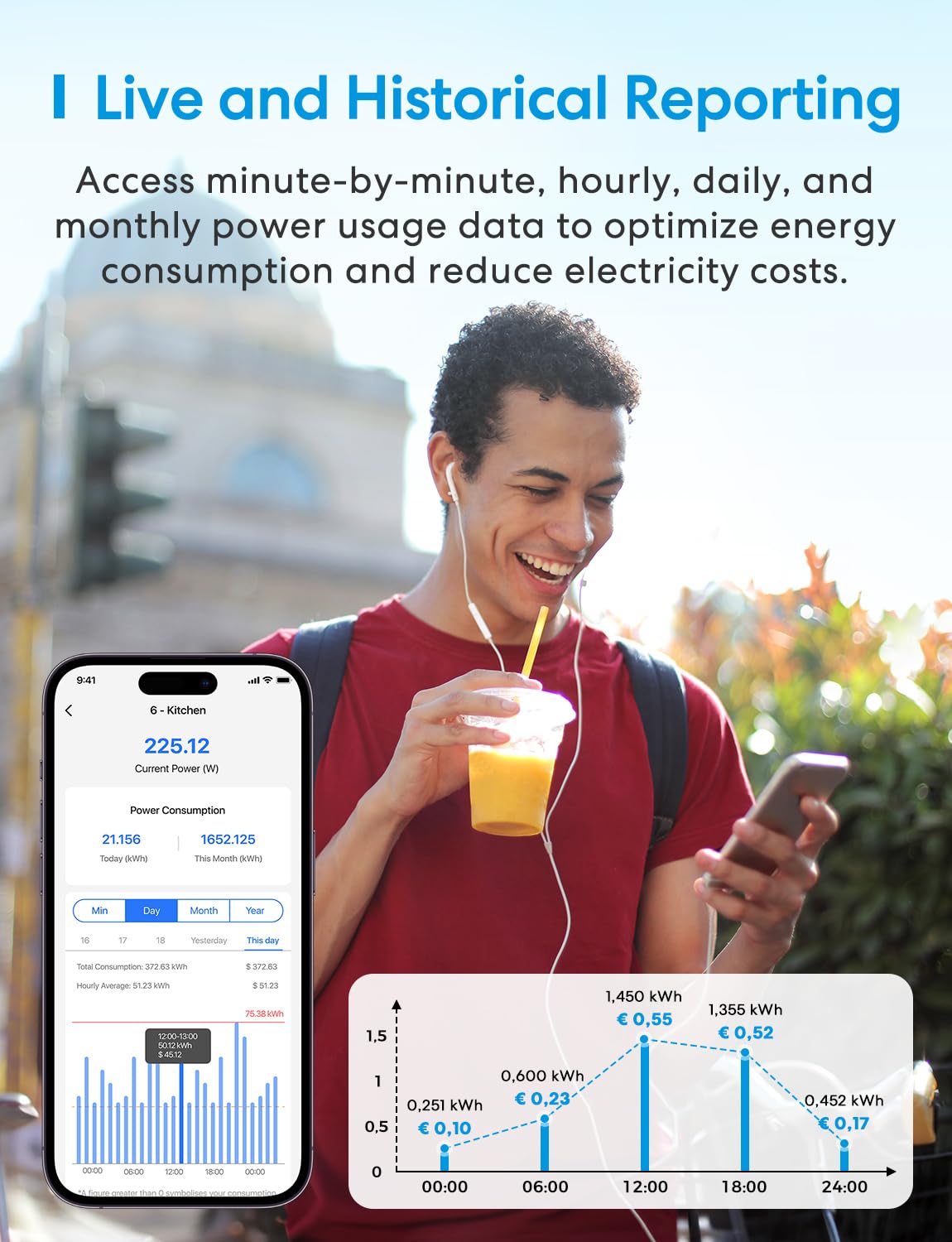 - Aktuelle Funktionserweiterungen: Profitieren Sie von neuen Features wie der Zusammenführung von Kanälen, dem stündlichen Export von Energiedaten, dem Management von Spitzenlasten und einer überarbeiteten Energiestatistik-Seite (aktuellste Meross App und Firmware vorausgesetzt).