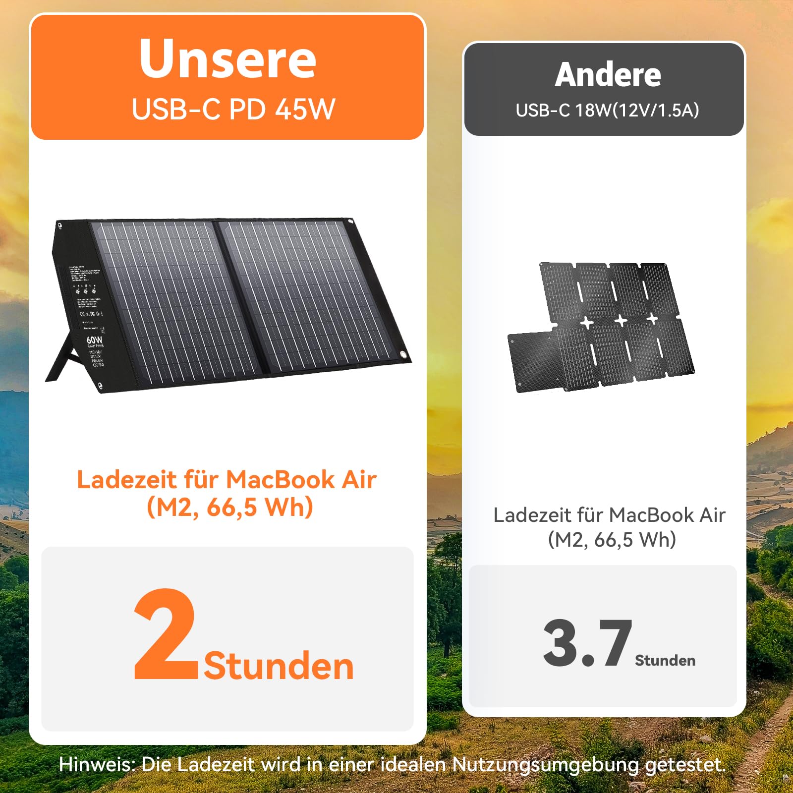 Mesuvida 60W Solarpanel Faltbar Ladegerät – 5 Anschlüsse