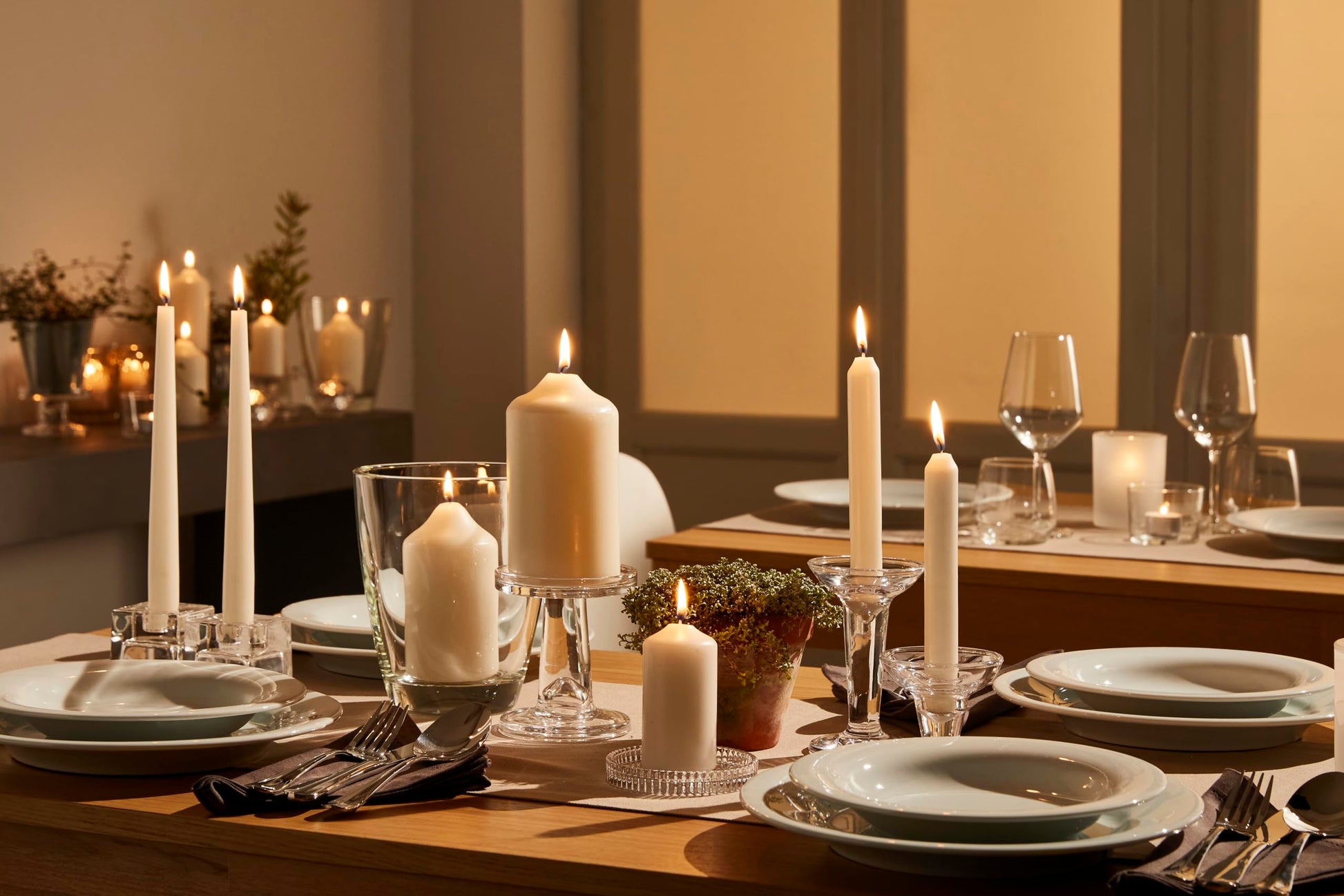 Diese hochwertigen Tafelkerzen im praktischen Grossformat sind eine zuverlässige Wahl für Gastronomiebetriebe und anspruchsvolle private Anlässe. Sie schaffen mit ihrem warmen Licht eine einladende und stimmungsvolle Atmosphäre.