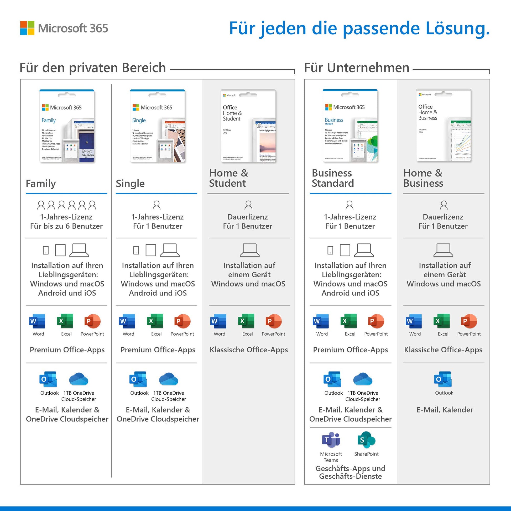 - Enthält die Premium-Anwendungen Word, Excel, PowerPoint und Outlook.