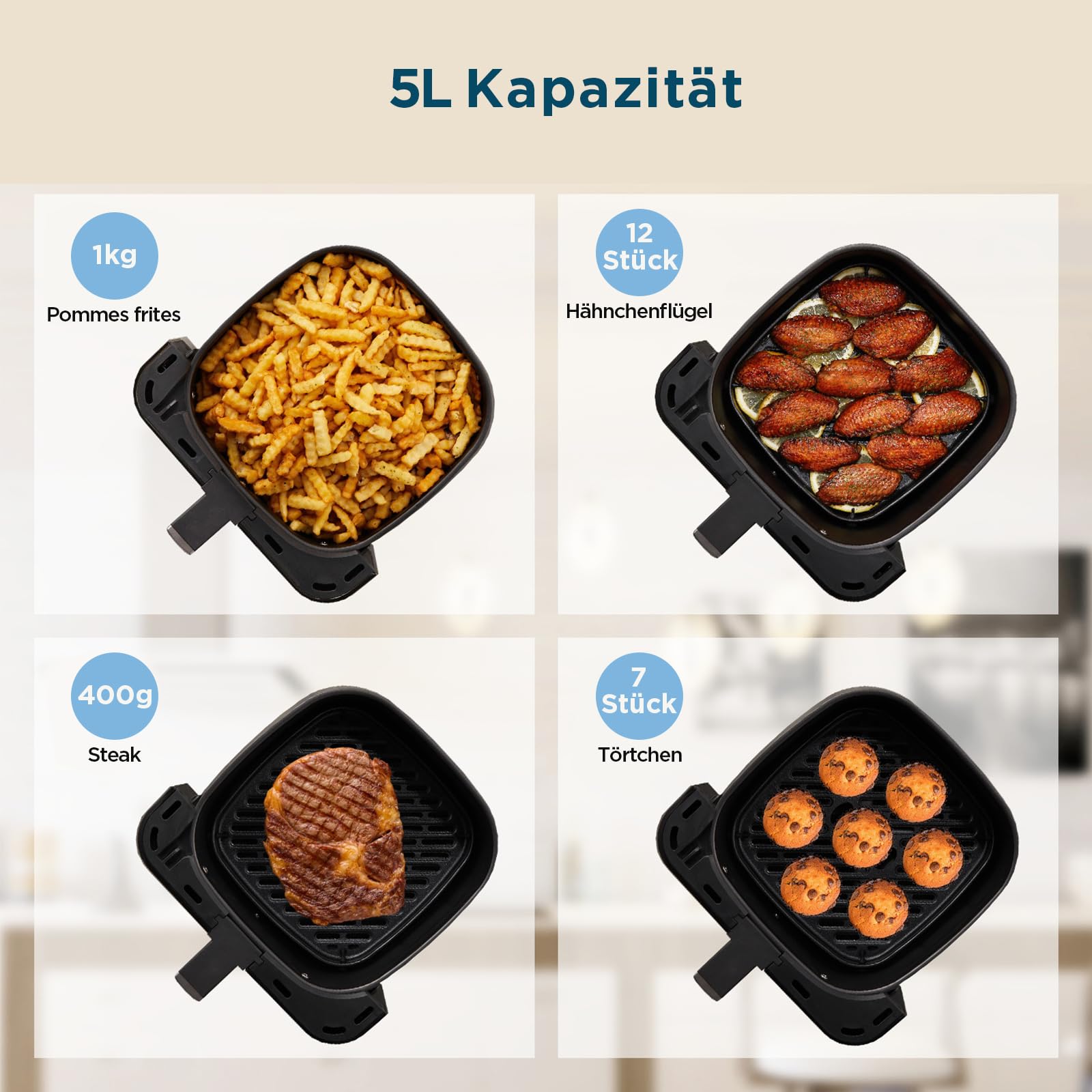 Diese Heissluftfritteuse ist ein multifunktionaler Küchenhelfer, der Ihnen hilft, im Handumdrehen köstliche und gesunde Gerichte zu zaubern.