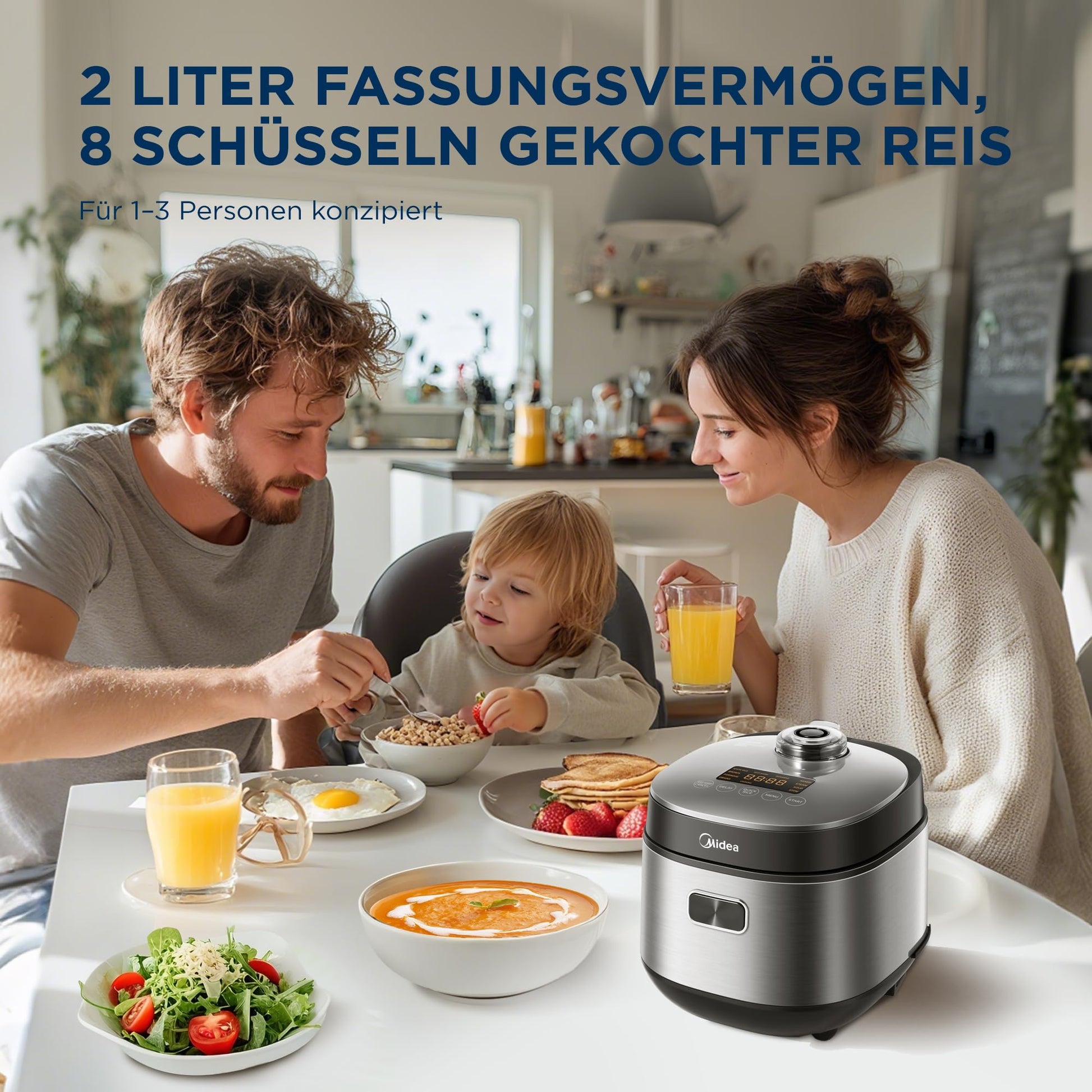 Midea Digitaler Reiskocher 2L Klein Multicooker – Schwarz/Silber