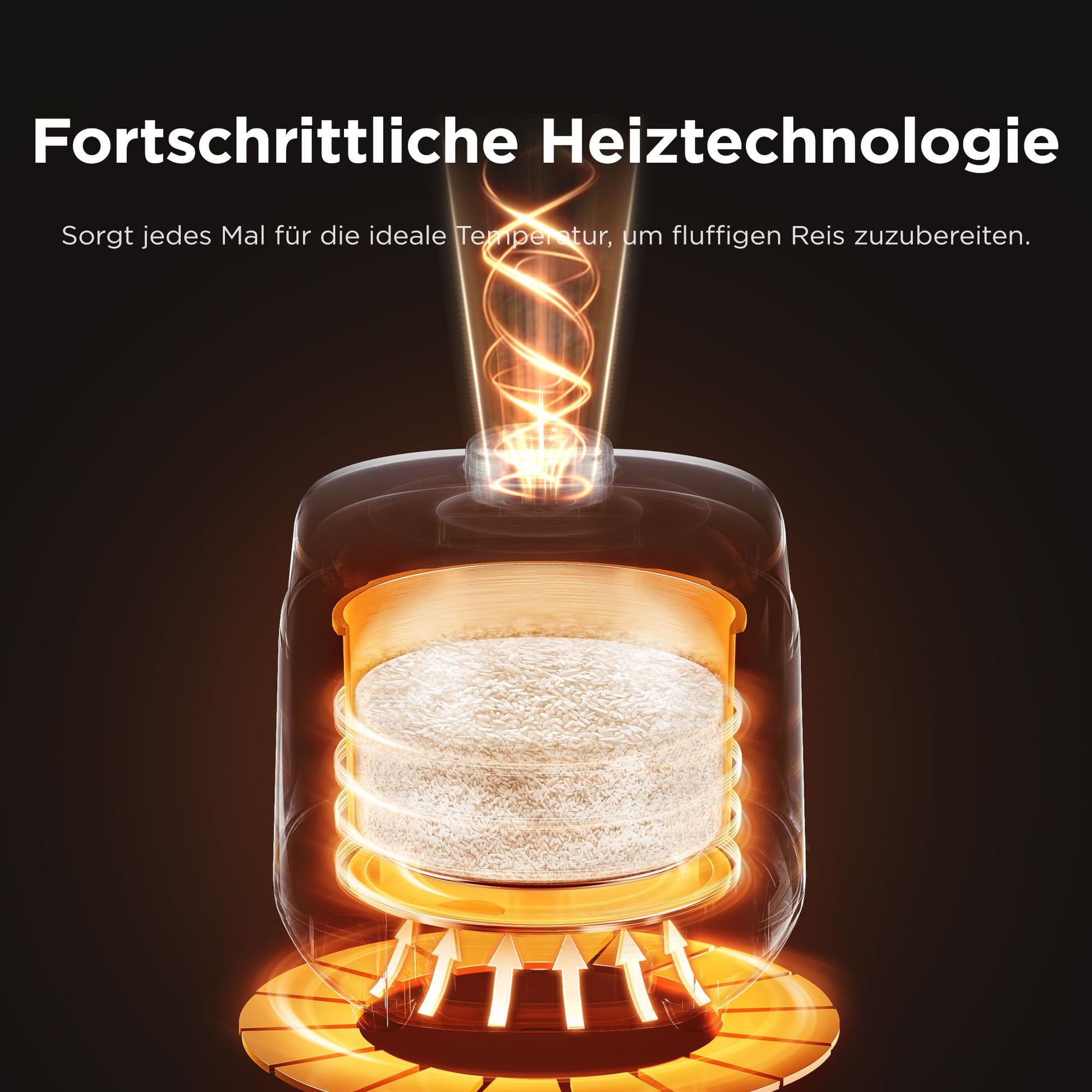 - Kompakte Grösse: Mit einem Fassungsvermögen von 2 Litern (bis zu 8 Tassen Reis) ist der Kocher ideal für 1 bis 3 Personen und passt auch in kleinere Küchen.