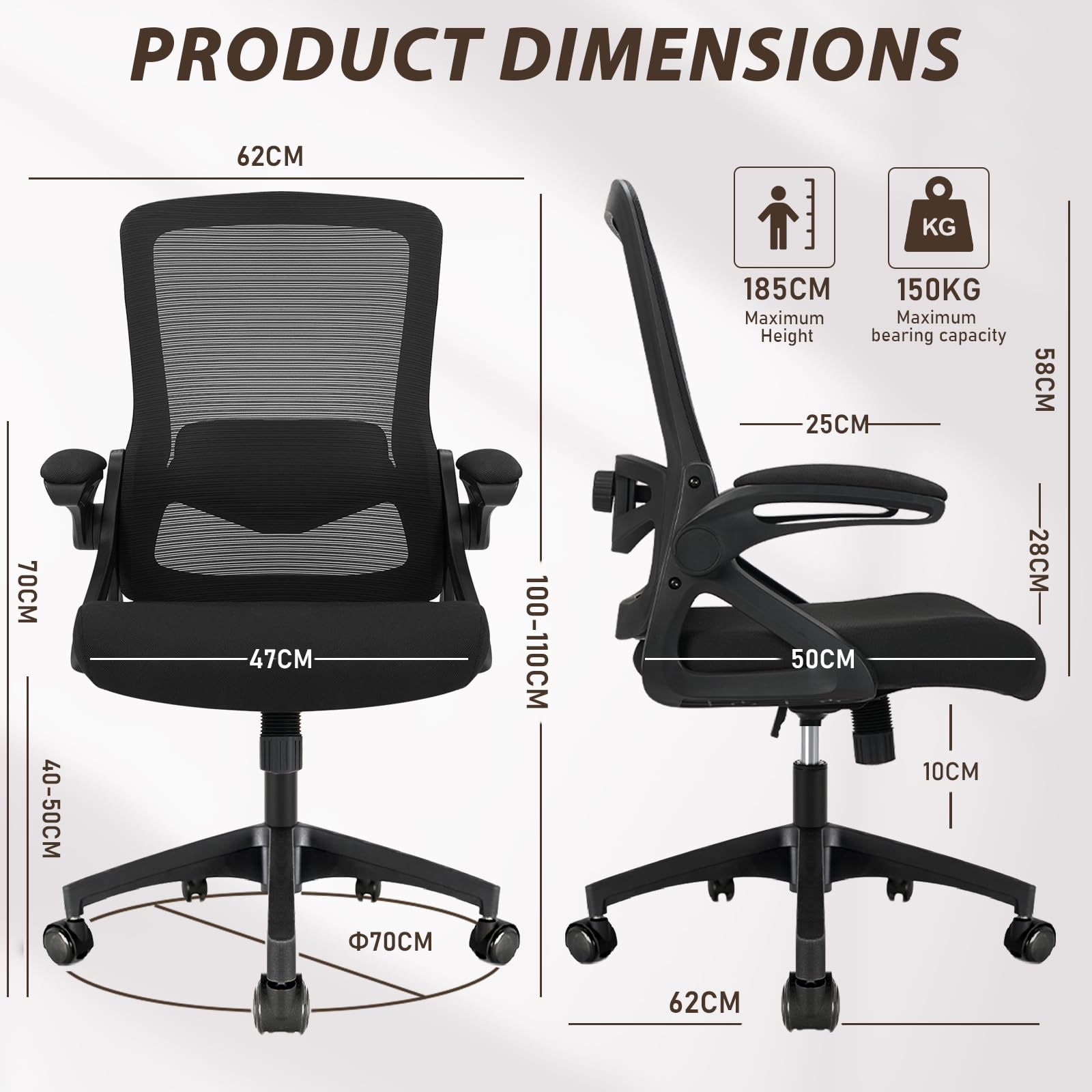 Maximale Flexibilität am Arbeitsplatz: Benötigen Sie mehr Bewegungsfreiheit oder möchten Sie den Stuhl platzsparend unter den Tisch schieben? Klappen Sie die Armlehnen einfach nach oben. Diese praktische Funktion macht den Stuhl ideal für vielseitige Arbeitsumgebungen und kompakte Büros.