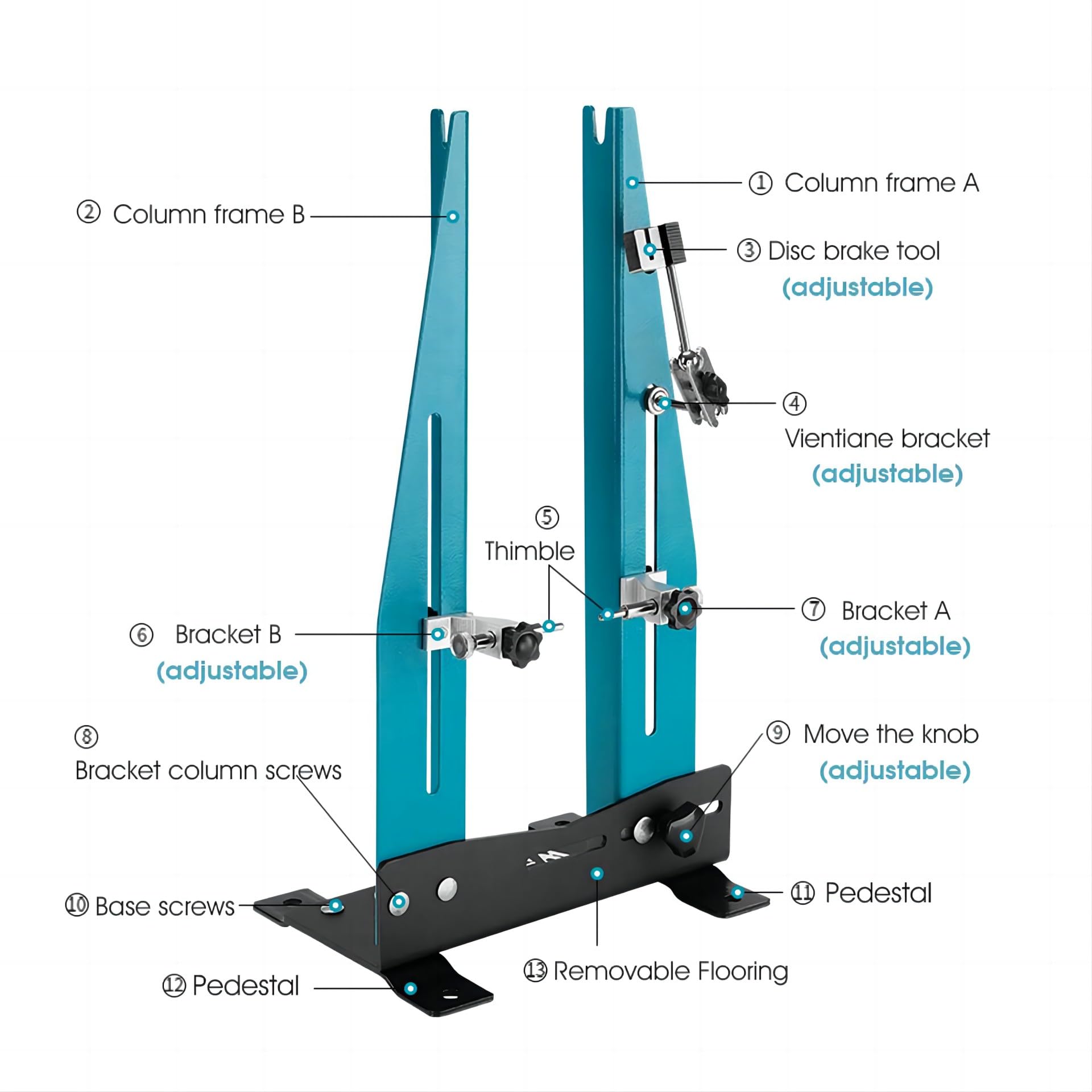 Mit diesem Zentrierständer wird die Wartung und Kalibrierung Ihrer Veloräder zum Kinderspiel. Er bietet die Stabilität und Präzision, die Sie für perfekt zentrierte Laufräder von 16 bis 29 Zoll benötigen.