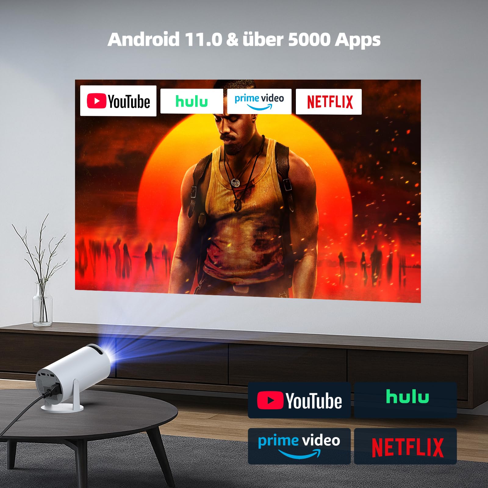 - Integriertes Android 11.0: Greifen Sie direkt vom Beamer auf Apps wie Prime Video, YouTube und weitere Streamingdienste zu – ganz ohne externe Geräte.