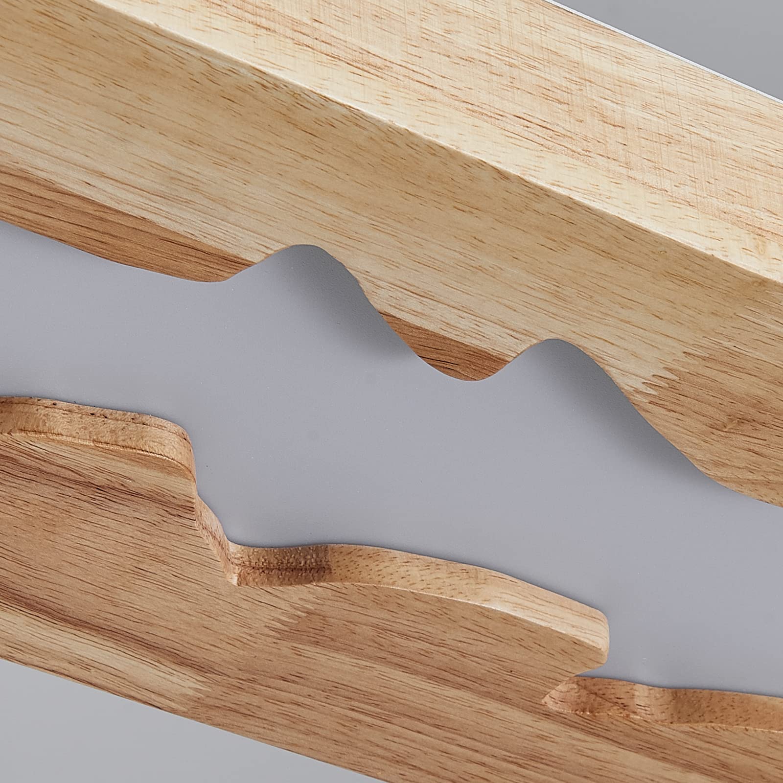 - Natürliches Holzdesign: Gefertigt aus Holz mit einer sichtbaren, einzigartigen Maserung und einem eleganten Schwung, der jedes Stück zu einem Unikat macht.