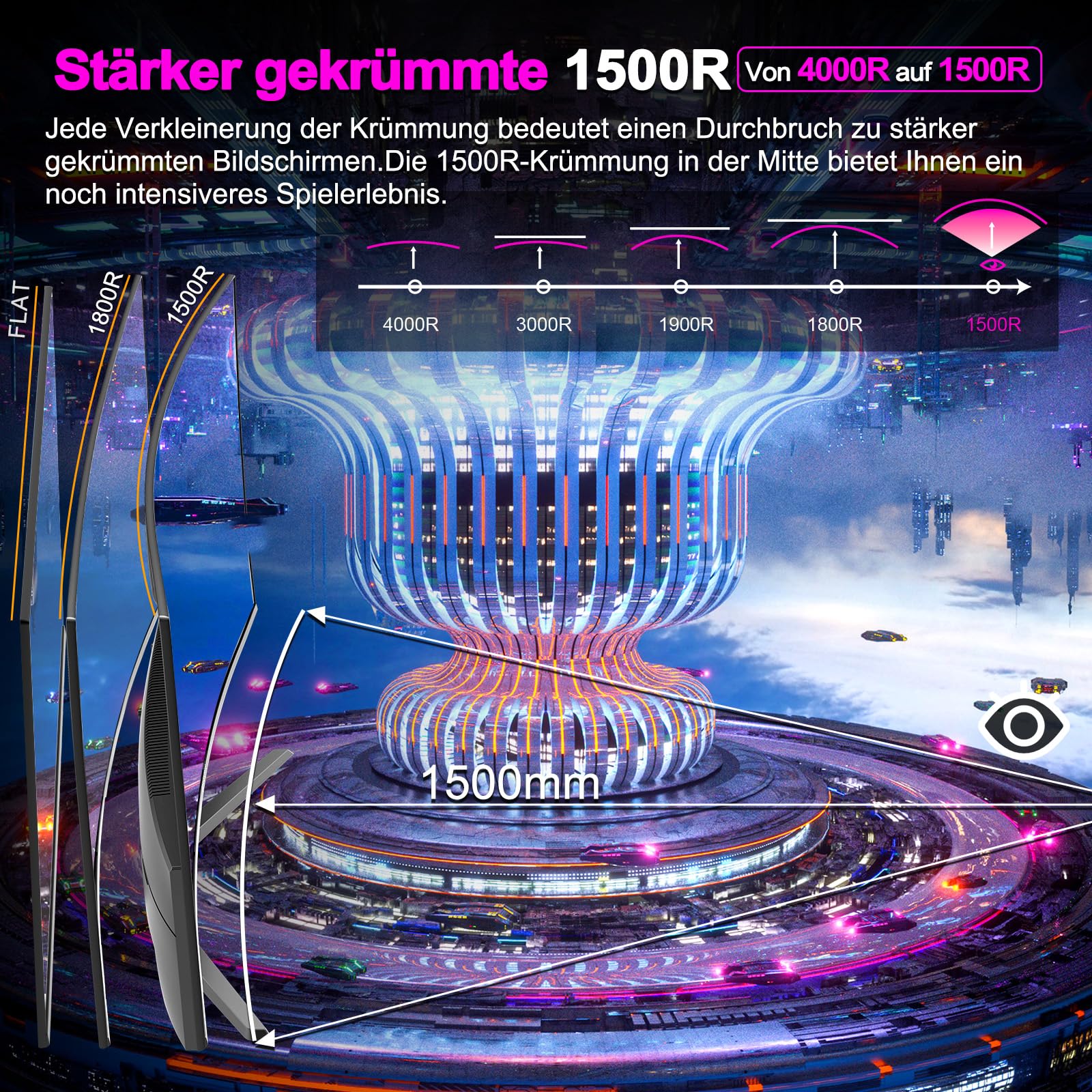 Der Monitor liefert dank Full-HD-Auflösung (1920x1080) und einem erweiterten Farbraum von 130% sRGB eine beeindruckende Bildqualität mit lebendigen und intensiven Farben. Die 1500R-Krümmung sorgt zusätzlich für ein immersives Seherlebnis.