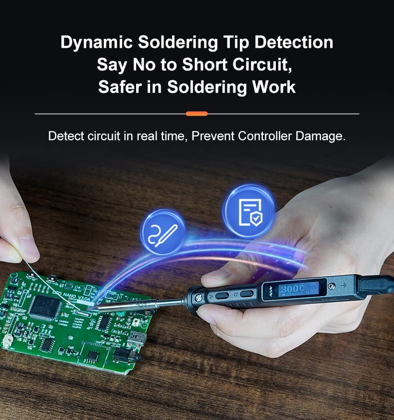 - Klares OLED-Display: Ein scharfer 128x32 Pixel OLED-Bildschirm zeigt die Temperatur an, die präzise zwischen 50 °C und 400 °C eingestellt werden kann.